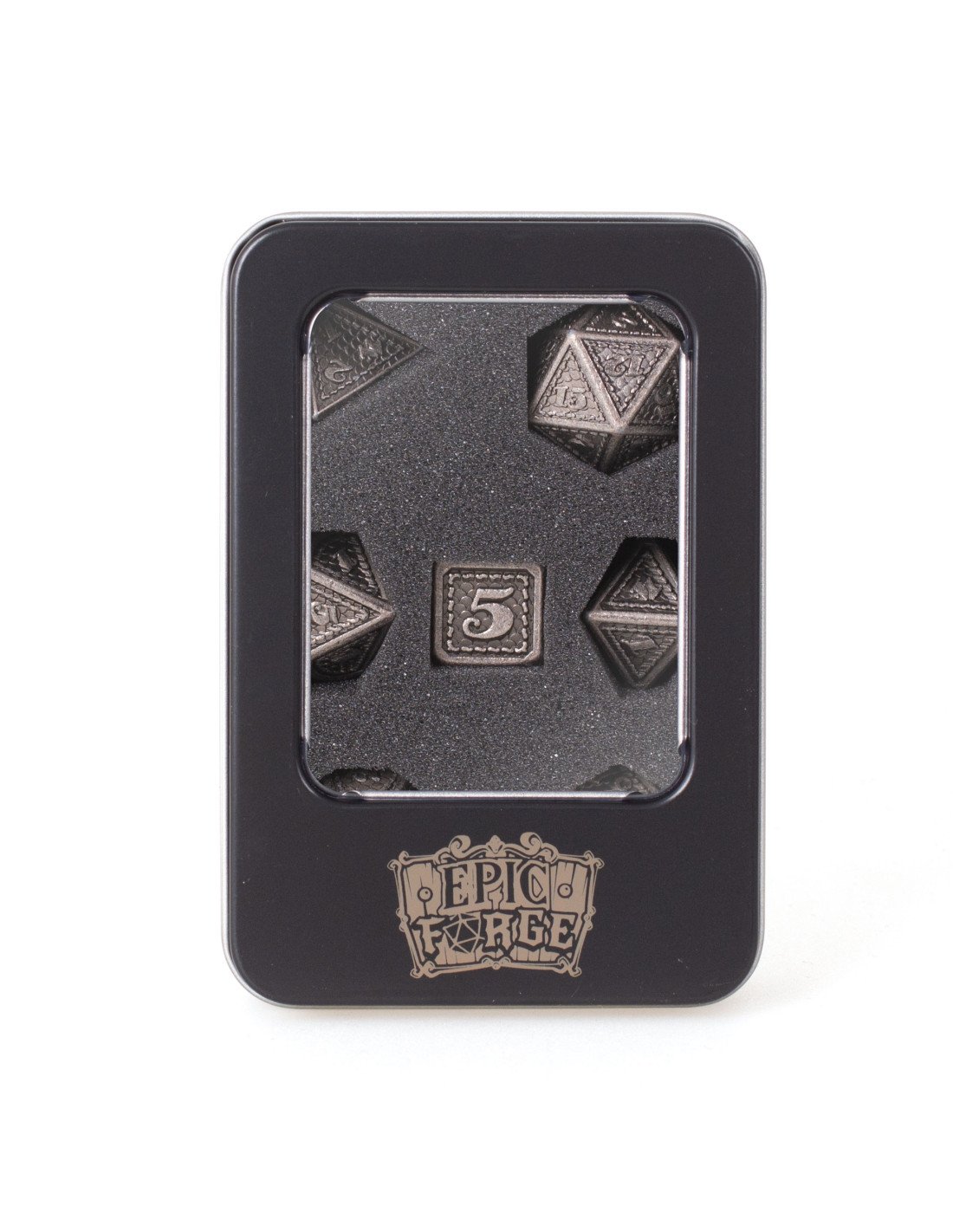 Lot 7 dés métal 16mm (boite métal) - Dragon Scale Silver