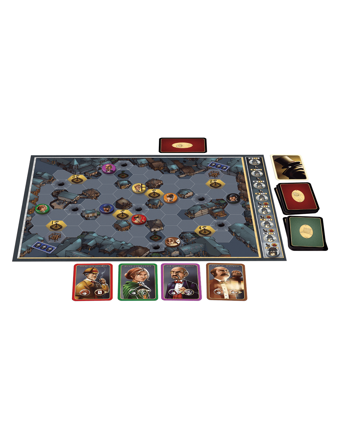 - Une reconstitution détaillée du quartier de Whitechapel avec un plateau de jeu immersif.