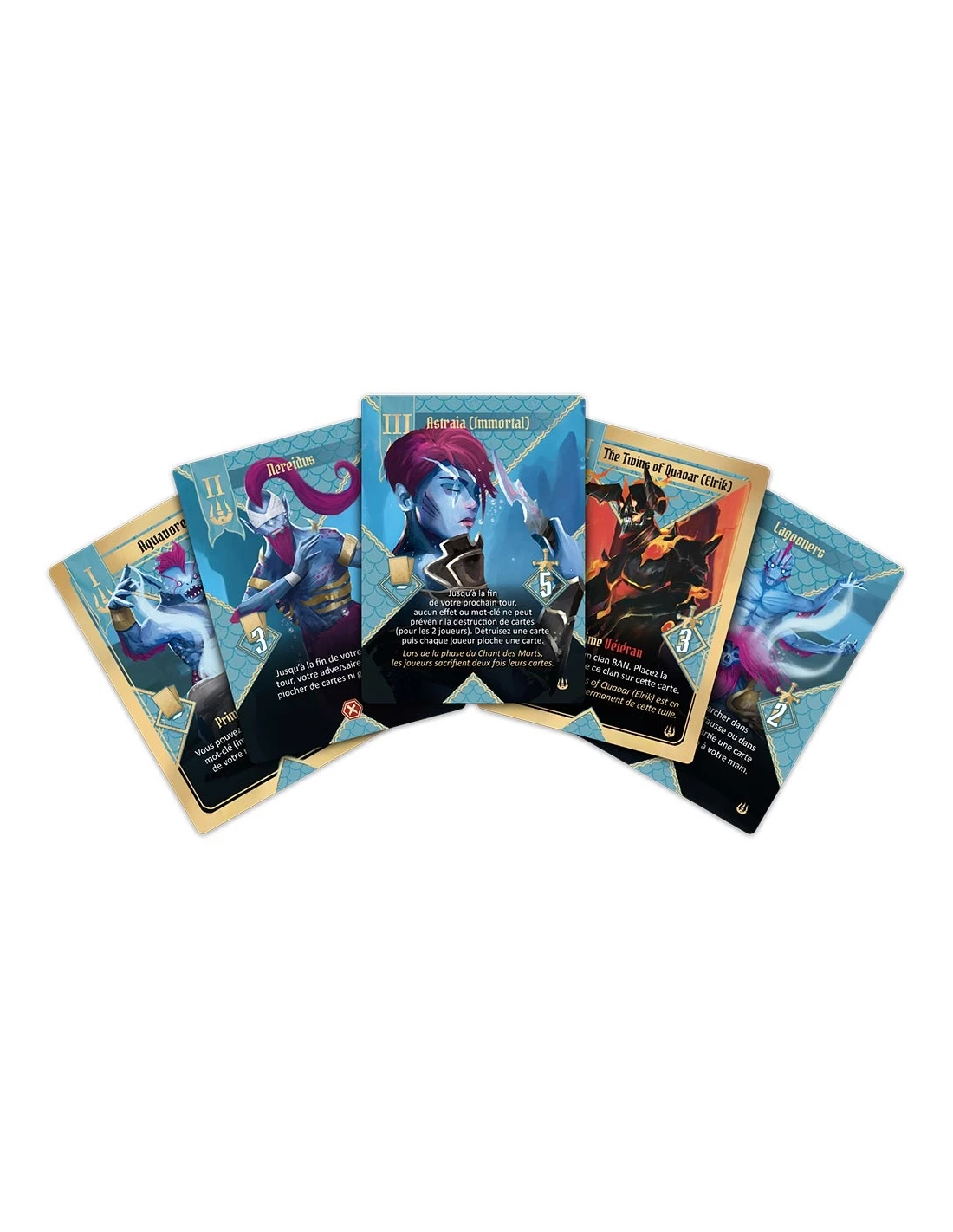 Avec l’extension Astraia, les joueurs recrutent un clan aquatique inédit, mené par la mystérieuse Reine des Lacertids. Depuis leur lac mystique, ces créatures possèdent un atout redoutable : le pouvoir Immortal, qui bouleverse les stratégies et relance la compétition.