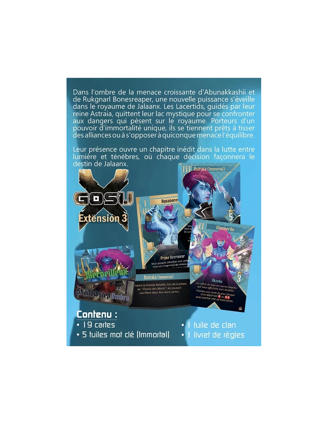 Cette extension renouvelle les affrontements et garantit des parties encore plus tendues et stratégiques. Elle nécessite le jeu de base Gosu X pour être jouée.