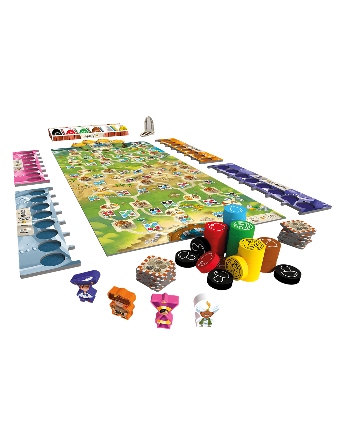 Dans ce royaume coloré, la Reine confie une mission à ses jeunes voyageurs : livrer les ressources essentielles aux habitants avant la fermeture des Portes du Palais ! Eau, choux, pommes, noisettes… collectez les bonnes ressources pour avancer plus vite sur le plateau et atteindre la récompense royale.