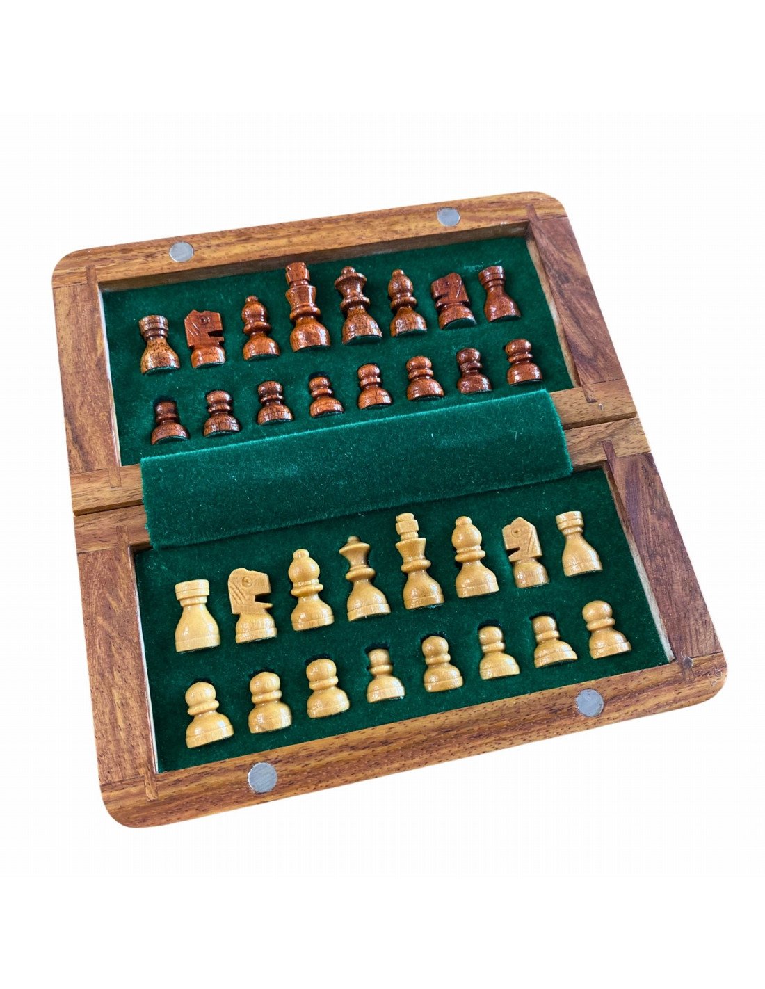 Ce qui rend ce jeu unique, ce sont ses pièces magnétiques qui assurent un maintien optimal, même dans les environnements les plus mouvementés. De plus, la garniture intérieure permet de ranger les pièces de manière sécurisée, évitant ainsi qu'elles ne s'entrechoquent pendant le transport. Le roi, mesurant 19 mm de hauteur, ajoute une touche d'élégance à ce jeu de voyage.