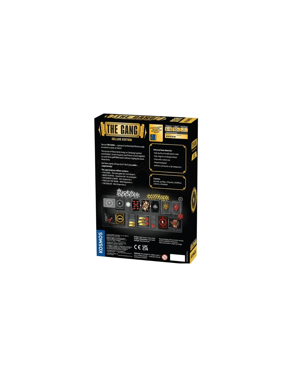 The Gang : Deluxe Edition est une édition spéciale du jeu de cartes coopératif The Gang qui inclut le jeu de base, l’extension The Gang : More Players qui porte à dix le nombre de joueurs, ainsi que trois packs d’extension pour plus de variabilité dans le jeu. Cette édition propose également des jetons de poker en céramique, des cartes de qualité casino et un tapis de jeu personnalisé.