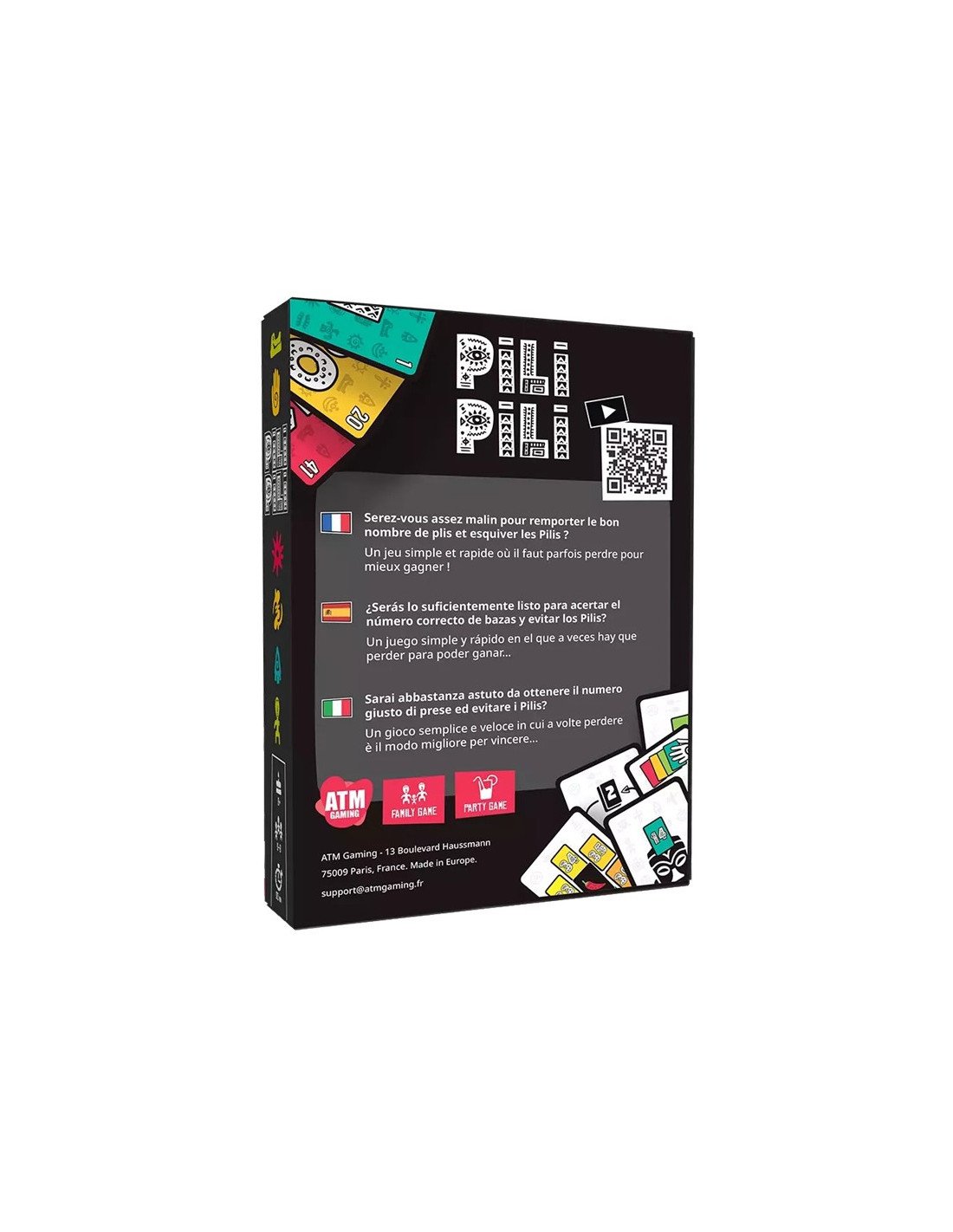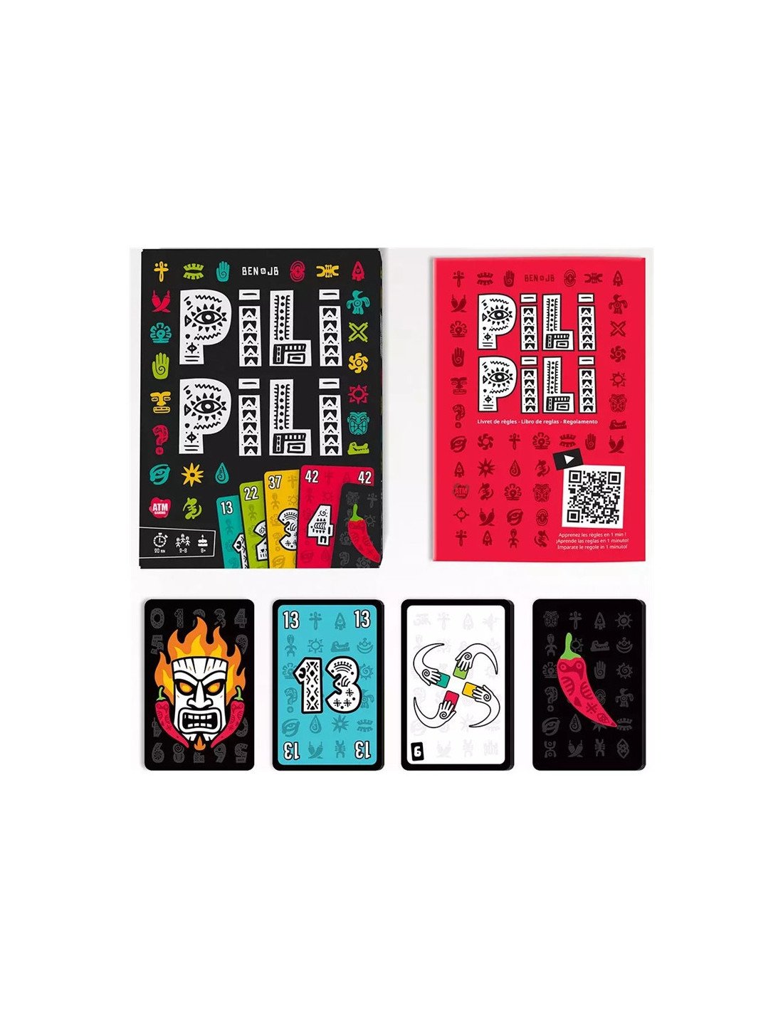 Pili Pili est un jeu de cartes et de plis pour 2 à 8 joueurs. Dans ce jeu de société, vous devrez parier sur le nombre de plis que vous pensez remporter, tout en vous adaptant à des missions qui pimentent chaque manche. Inspiré par le petit piment africain du même nom, le jeu Pili Pili vous met au défi de faire les bons paris, d’esquiver les pièges et de réussir des missions qui bouleversent les règles à chaque tour. Avec ses manches dynamiques, ses rebondissements permanents et son humour bien dosé, Pili Pili est parfait pour des parties courtes mais intenses, entre joueurs aguerris comme débutants.
