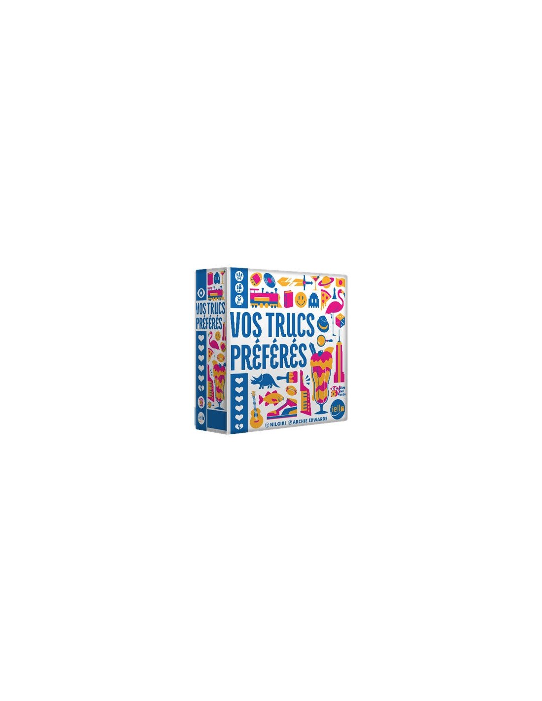 Vos Trucs Préférés est un jeu d’ambiance… psychologique ! Ce jeu revisite le jeu de plis d'une manière très originale. Dans Vos Trucs Préférés, pas de chiffres visibles : vous jouez des cartes dont vous ignorez la valeur exacte. Pour espérer gagner, vous devrez deviner comment vos adversaires ont classé leurs éléments préférés… ou détestés ! Que ce soit lasagnes ou sushi, lundi ou vendredi, Gandalf ou Dark Vador, ce jeu vous plonge dans un univers de déduction, d'intuition et de connaissance des autres. Vos Trucs Préférés réinvente le jeu de plis en y associant psychologie et débats inattendus. C'est un jeu idéal pour découvrir ce que vos proches aiment… ou détestent vraiment.
