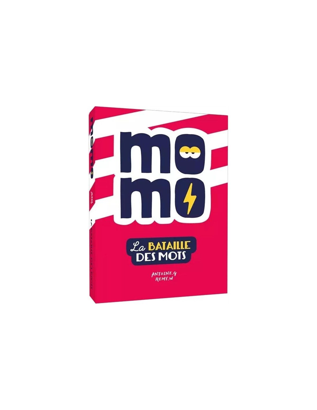 Momo La Bataille des Mots est un jeu de société d’ambiance aussi drôle qu’addictif, pensé pour faire rire tout le monde. Accessible dès 12 ans, il se joue en famille ou entre amis, à l’apéro, en week-end ou en vacances. À chaque tour, les joueurs retournent une carte de leur pile en même temps et doivent trouver un mot en fonction des contraintes : une ou des lettre(s) obligatoire(s), une lettre interdite, un thème imposé... Le plus rapide à trouver un mot qui répond aux critères le crie, mais attention à ce que la réponse soit bien valable ! Le dernier joueur à trouver un mot ou le premier qui se trompe ramasse toutes les cartes, et on passe au prochain tour. Quand toutes les piles sont vides, le joueur qui a le moins de cartes ramassées remporte la manche ! Des cartes spéciales comme "Flash !", "Inversion" ou l'accent anglais viennent pimenter la partie et rendre chaque manche unique. Facile à transporter, rapide à expliquer et toujours imprévisible, Momo La Bataille des Mots est un jeu qui promet des heures de rires et de convivialité.