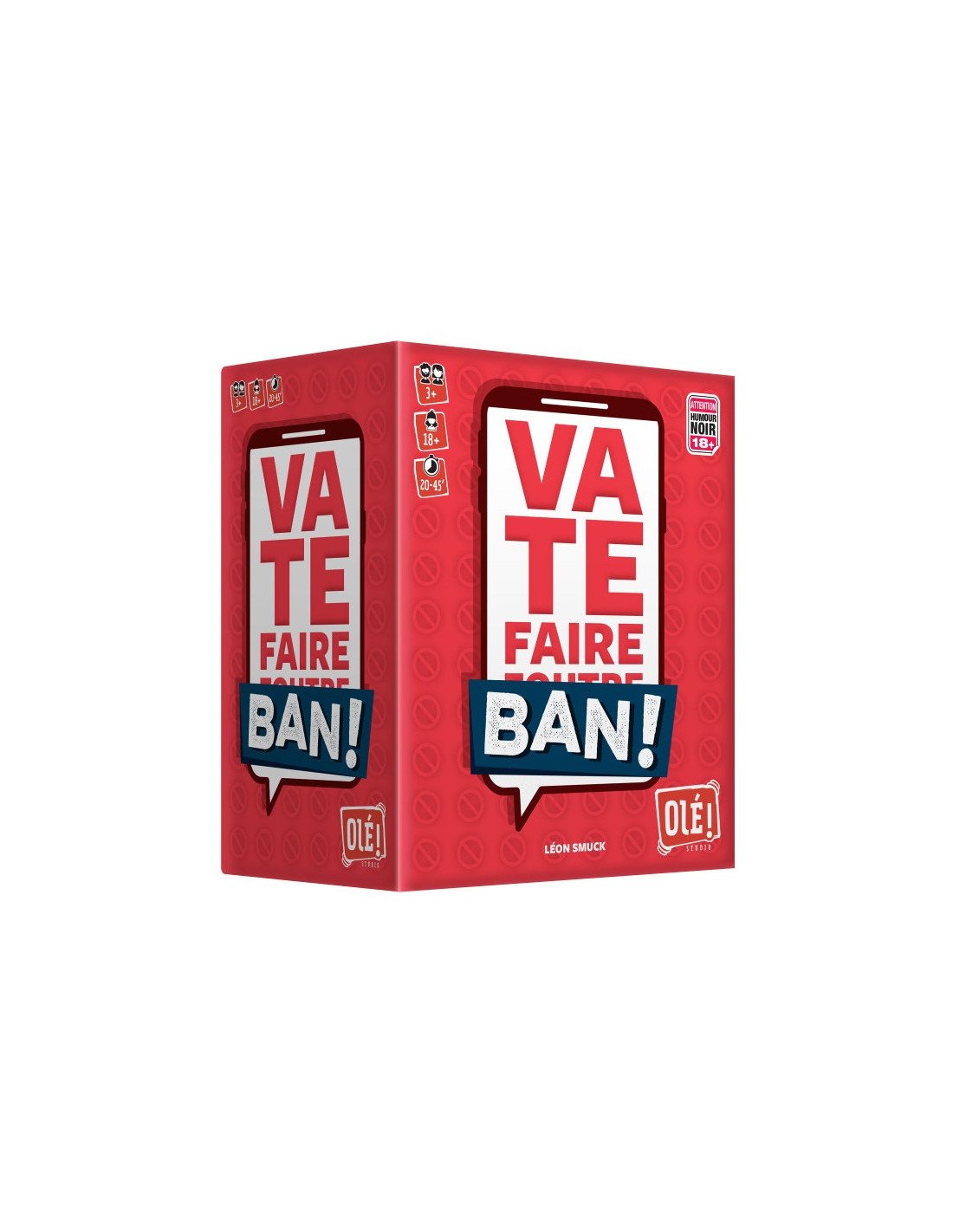 Plongez dans l'univers décalé de Va te faire Ban, un jeu de société où l'humour noir et les répliques cinglantes sont à l'honneur. Inspiré par de véritables tweets, ce jeu vous invite à sortir votre meilleure punchline pour provoquer un maximum de réactions lors de vos soirées entre amis. Que vous soyez un amateur de blagues piquantes ou simplement en quête de rires, ce jeu est fait pour vous !