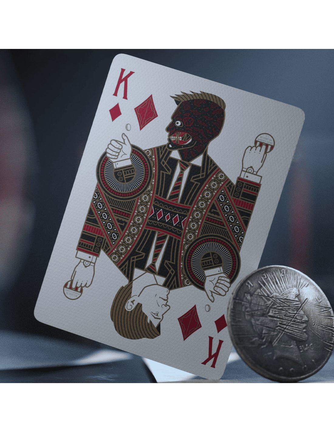 Découvrez les cartes Theory11 Dark Knight, un hommage à la trilogie Batman avec des détails sculptés et des personnages emblématiques.
