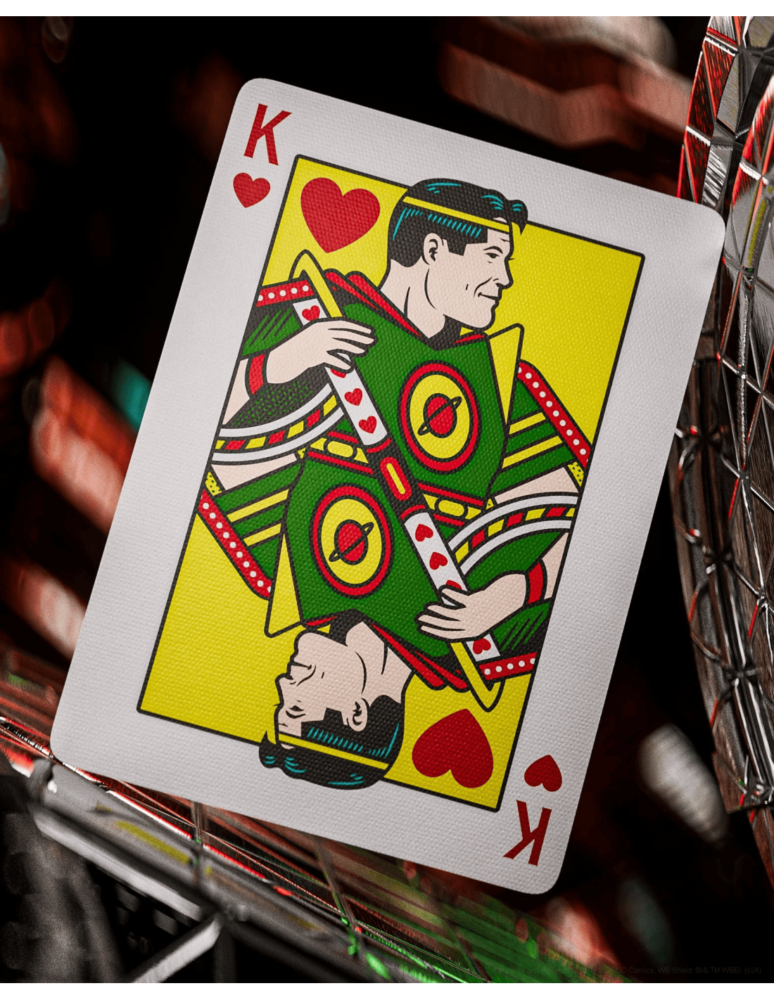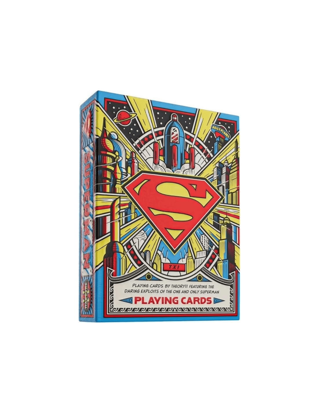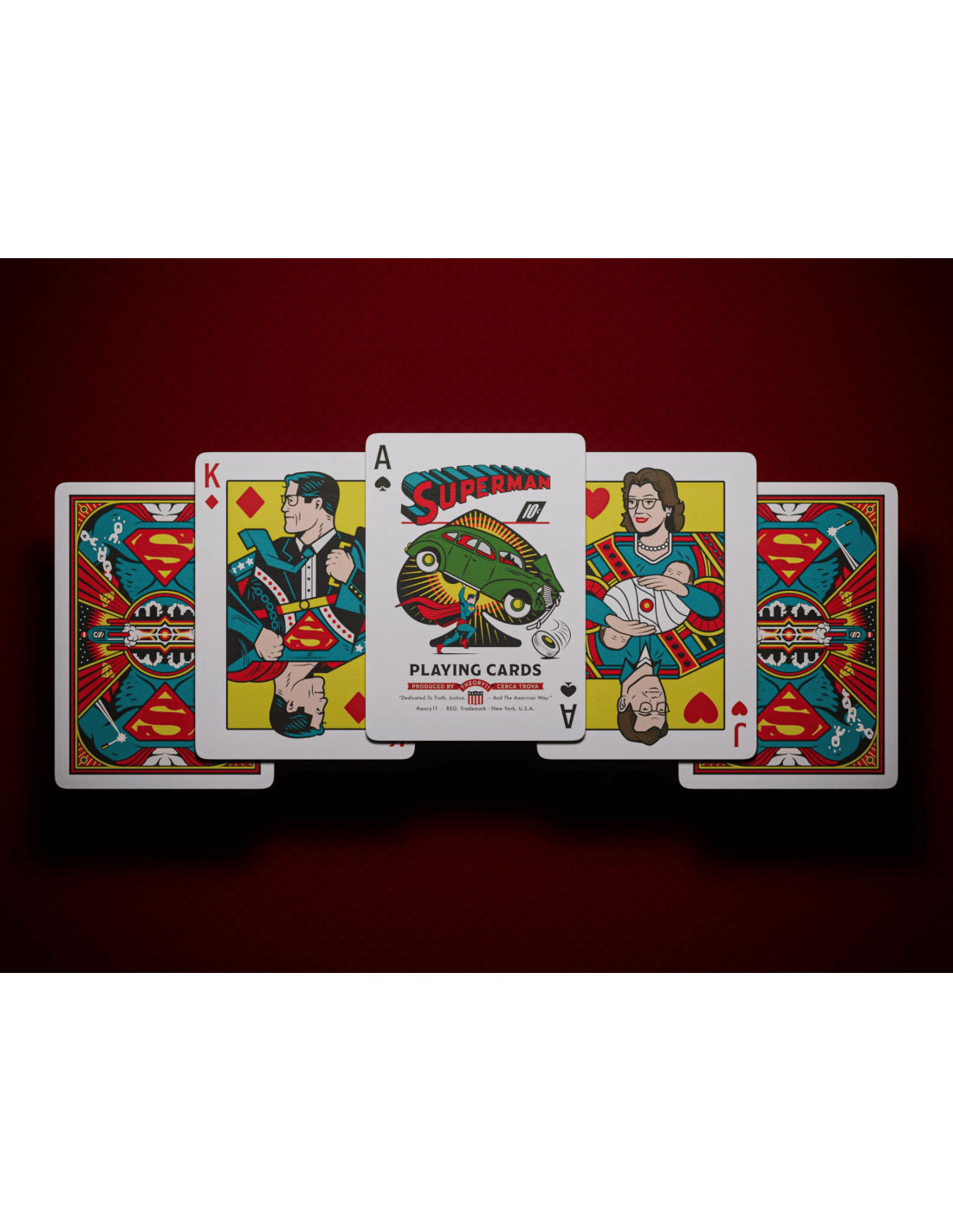 Inspiré par l'Âge d'Or des Comics DC, le jeu de cartes Theory11 - Superman rend hommage au tout premier super-héros. Avec des illustrations entièrement personnalisées et un gaufrage de qualité supérieure, chaque jeu est orné des couleurs vives de Superman. Scellé par un timbre postal provenant directement du bureau de poste du Daily Planet, ce jeu fait revivre vos personnages préférés tels que Clark Kent/Superman, Lois Lane, Supergirl, et bien d'autres, tout en incluant des méchants emblématiques comme Lex Luthor et Darkseid.