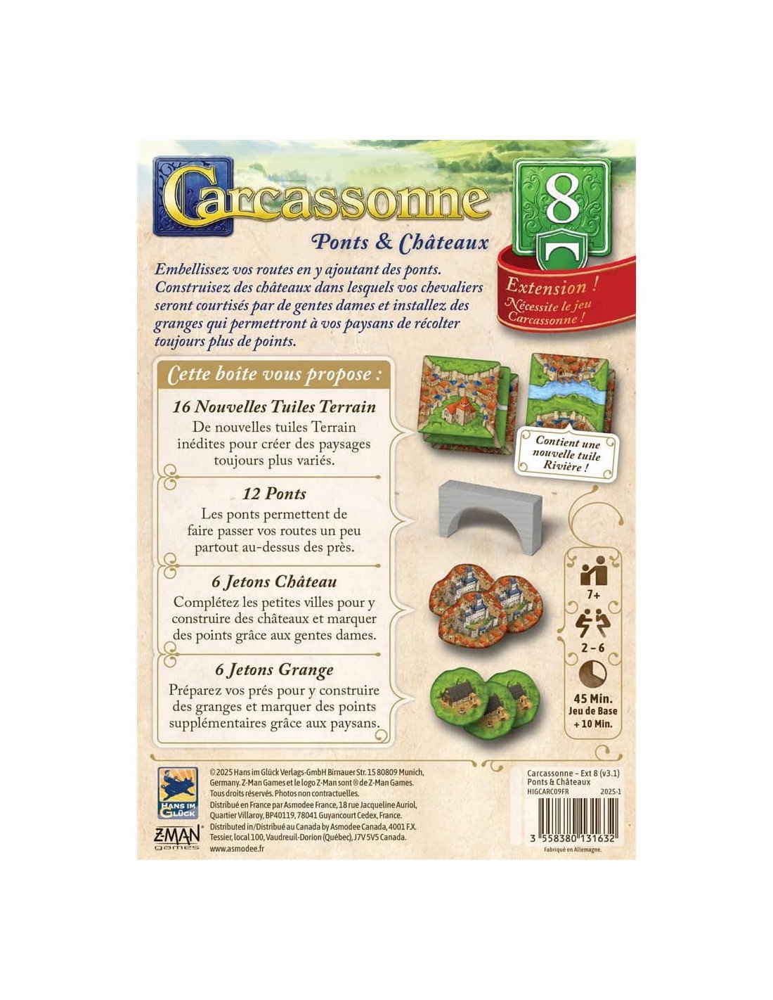 Ponts, châteaux et granges enrichissent vos options de jeu dans cette extension stratégique de Carcassonne. Un indispensable pour les bâtisseurs ambitieux !