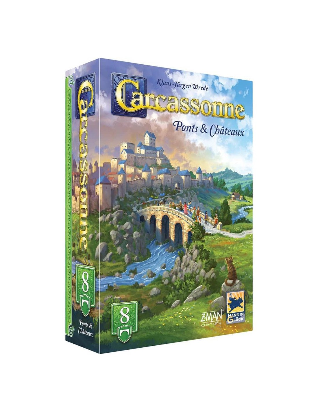 Avec Ponts & Châteaux, Carcassonne s'embellit et s'intensifie ! Les ponts permettent à vos routes de franchir les prés, ouvrant de nouvelles possibilités tactiques sur le plateau. Les châteaux, construits à partir de petites villes terminées, vous rapportent des points lorsque les constructions adjacentes s’achèvent.