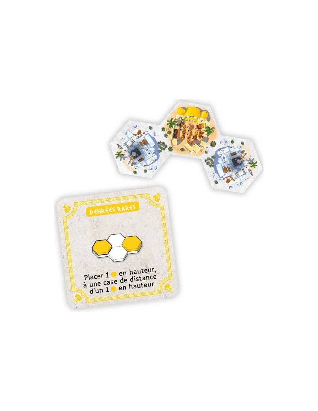 Les tuiles sont de cinq types : habitations, marchés, casernes, temples, jardins. Chaque type impose ses règles de scoring : par exemple les habitations ne comptent que dans le plus grand groupe, les marchés ne doivent pas être adjacents entre eux, les casernes doivent être placées en périphérie, etc.