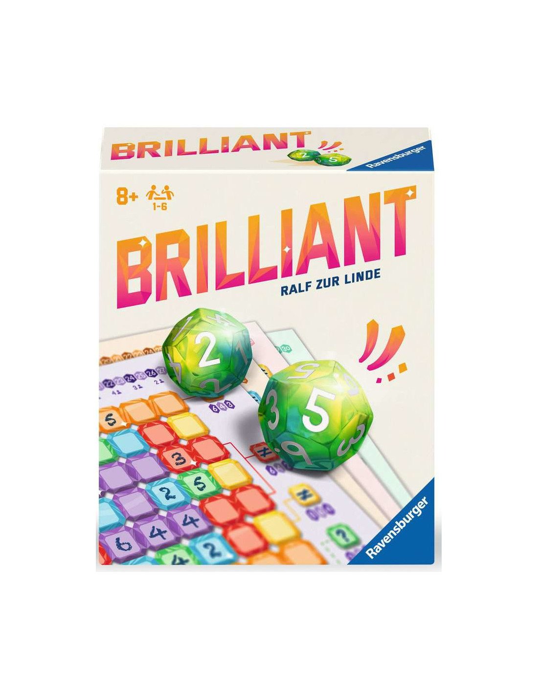 Brilliant est un jeu de société de type Roll & Write, conçu pour 1 à 6 joueurs à partir de 8 ans, avec des parties d'environ 20 minutes. Chaque joueur dispose d'une grille personnelle composée de zones colorées, chacune ayant des règles spécifiques pour le placement des chiffres. À chaque tour, deux dés sont lancés, et les joueurs choisissent l'un des deux résultats pour l'inscrire sur leur grille, en respectant les contraintes de chaque zone. L'objectif est de compléter les zones avant les autres joueurs pour accumuler le plus de points possible. Le jeu propose quatre niveaux de difficulté, offrant une courbe de progression intéressante et une rejouabilité élevée. Une variante solo est également incluse dans la boîte de jeu.