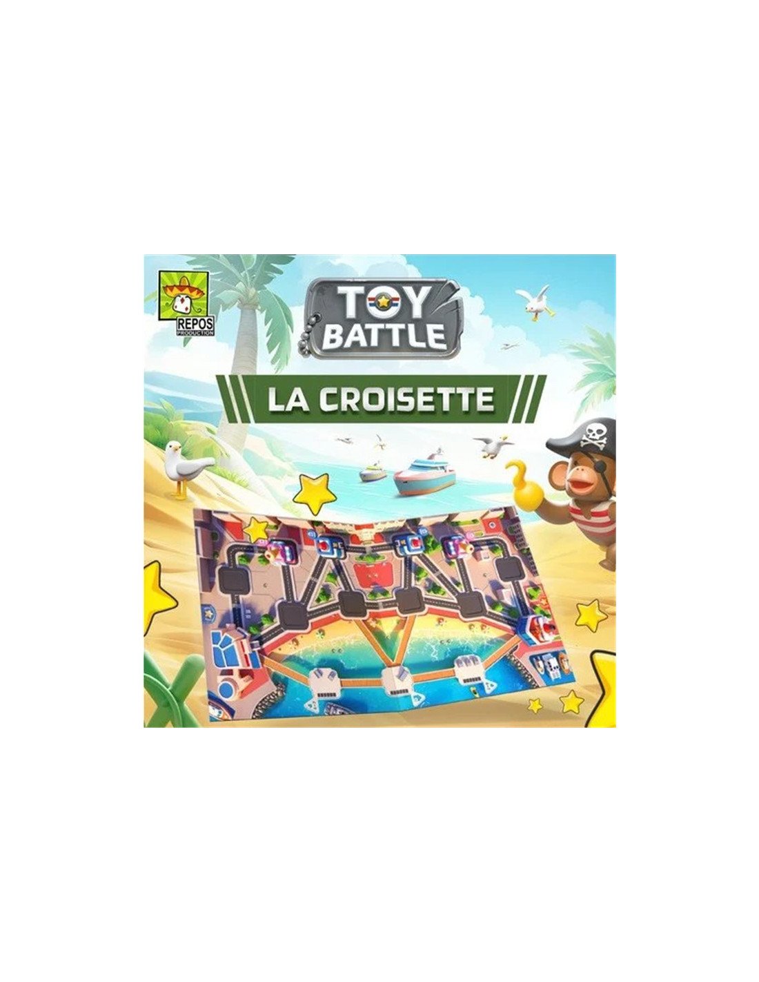 Variez vos parties de Toy Battle avec un plateau collector créé spécialement pour le Festival International des Jeux de Cannes 2026. Ce 9ème champ de bataille inédit, intitulé "La Croisette", vous plonge dans une expérience unique où les deux bases rouge et bleue se trouvent chacune à une extrémité de la mythique promenade. L'une est située dans un yacht, tandis que l'autre se trouve au Palais des Festivals lui-même. Adaptez-vous aux effets et restrictions inédites de ce nouveau plateau, avec notamment des bases spéciales placées sur l'eau. Un nouveau terrain de jeu pour vos stratégies !