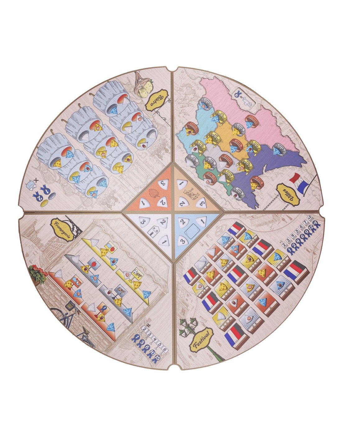 Dans Fromage, chaque joueur incarne un artisan du village qui cherche à bâtir la fromagerie la plus prospère. Grâce à un astucieux système de pose de tuiles, vous développez vos ateliers, organisez vos productions et optimisez vos livraisons de lait.