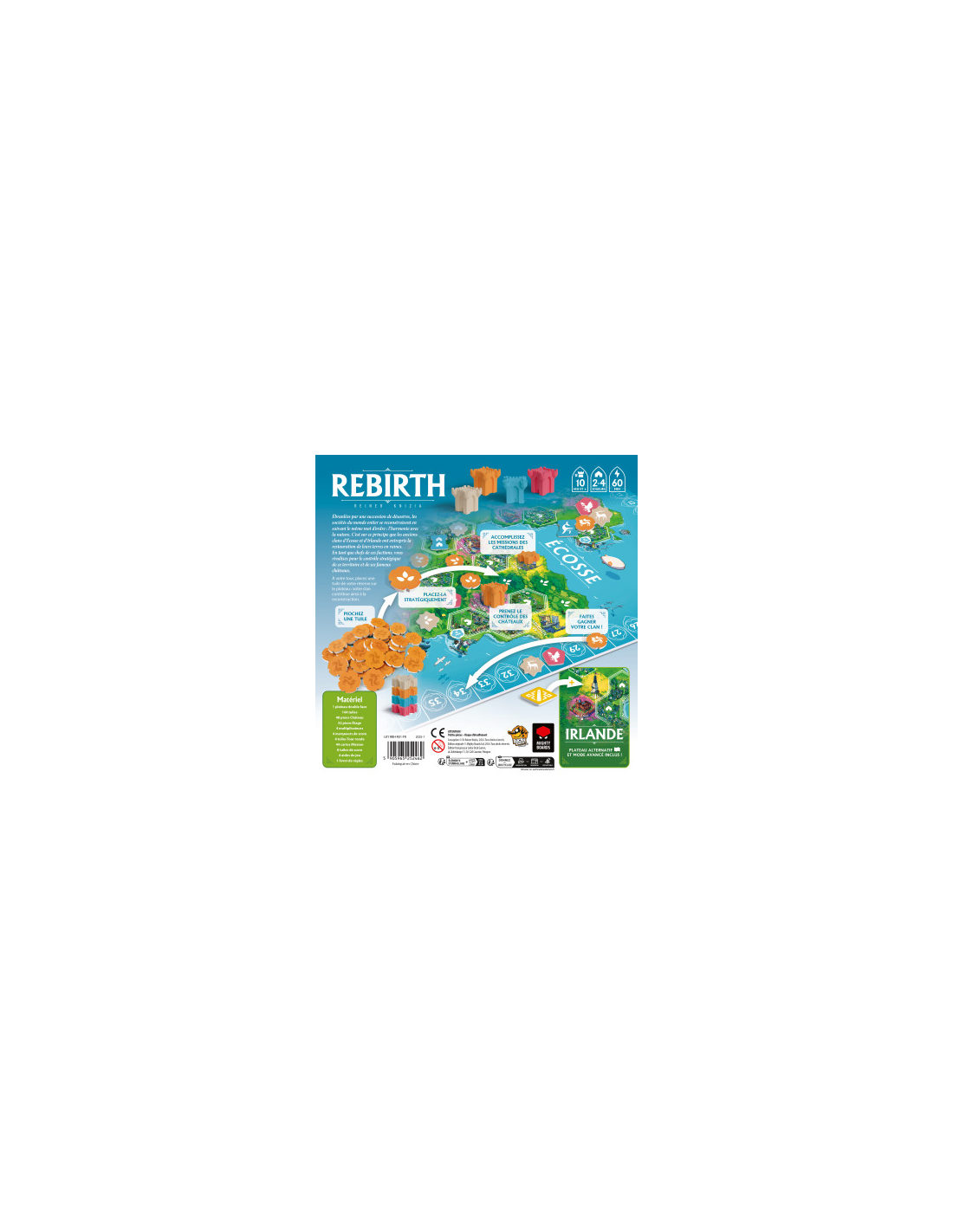 Le monde se relève d’une série de catastrophes, et les anciens clans reprennent en main la reconstruction des terres dévastées. Dans Rebirth, le maître incontesté du design ludique, Reiner Knizia, revisite la pose de tuiles avec un eurogame moderne, fluide et stratégique.