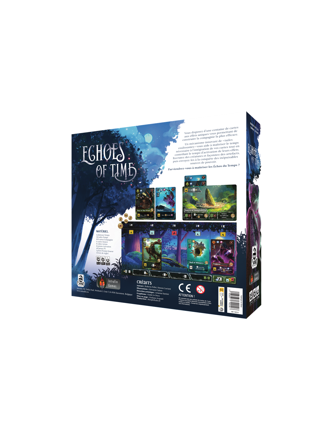 Echoes of Time est un jeu de stratégie passionnant qui vous plonge dans un univers où le temps est une ressource précieuse. Dans ce jeu de cartes pour 2 à 4 joueurs, vous aurez l'opportunité de recruter des créatures fascinantes, de forger des artefacts puissants et de manipuler le temps grâce à un ingénieux système de tuiles coulissantes. Préparez-vous à conquérir des sources de pouvoir infinies et à faire preuve de stratégie pour dominer vos adversaires.