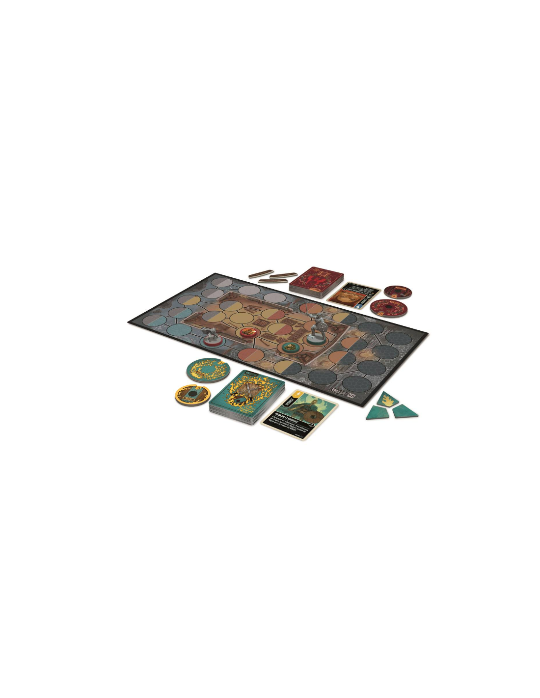 Contenu : 2 figurines Héros, 2 jetons Acolyte, 4 compteurs Santé, 63 cartes, 1 plateau recto verso, 3 jetons Porte, 3 jetons Rage et 1 livret de règles.