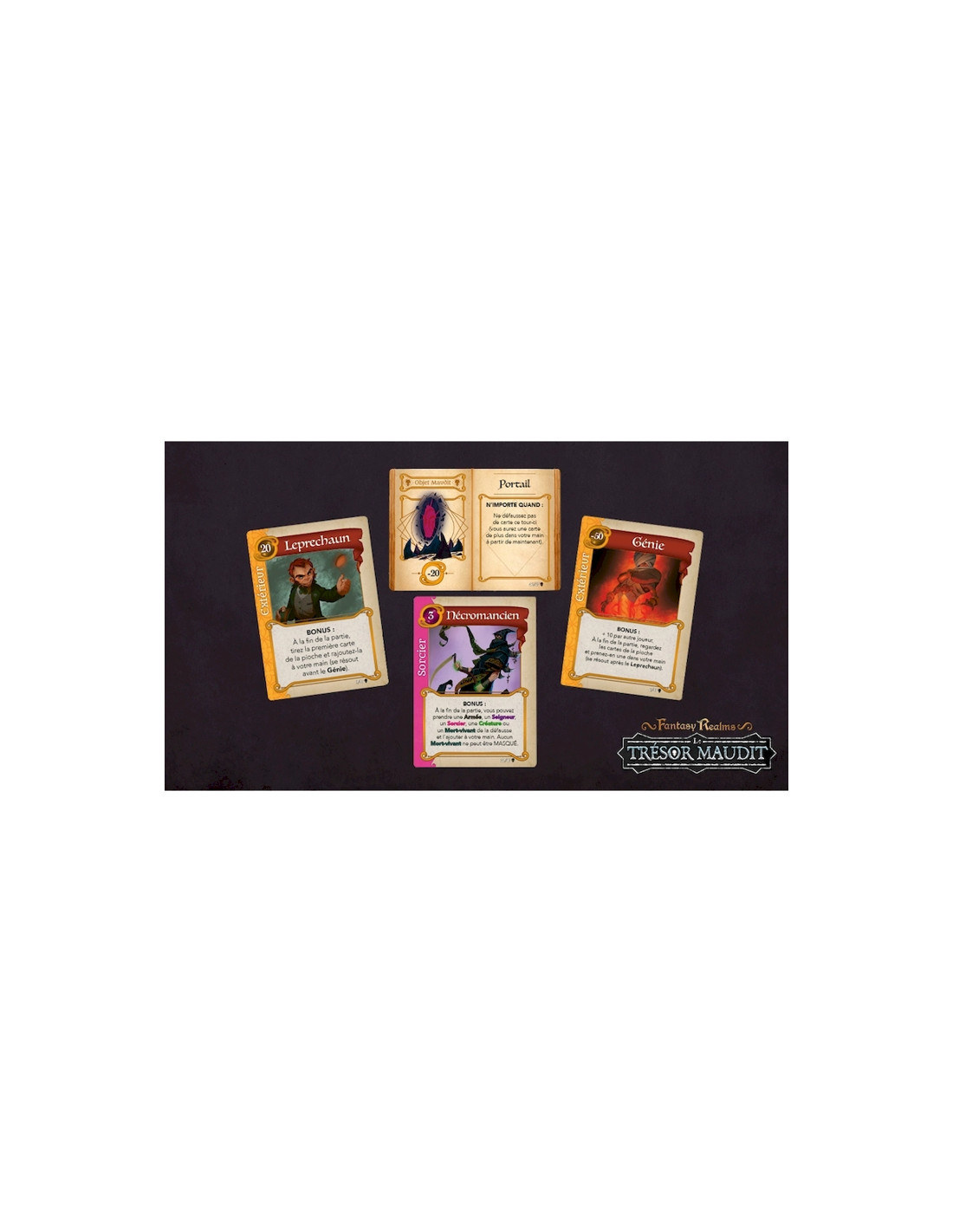 L’extension Fantasy Realms : Le Trésor Maudit se compose de deux parties qui peuvent être ajoutées au jeu de base séparément ou combinées.