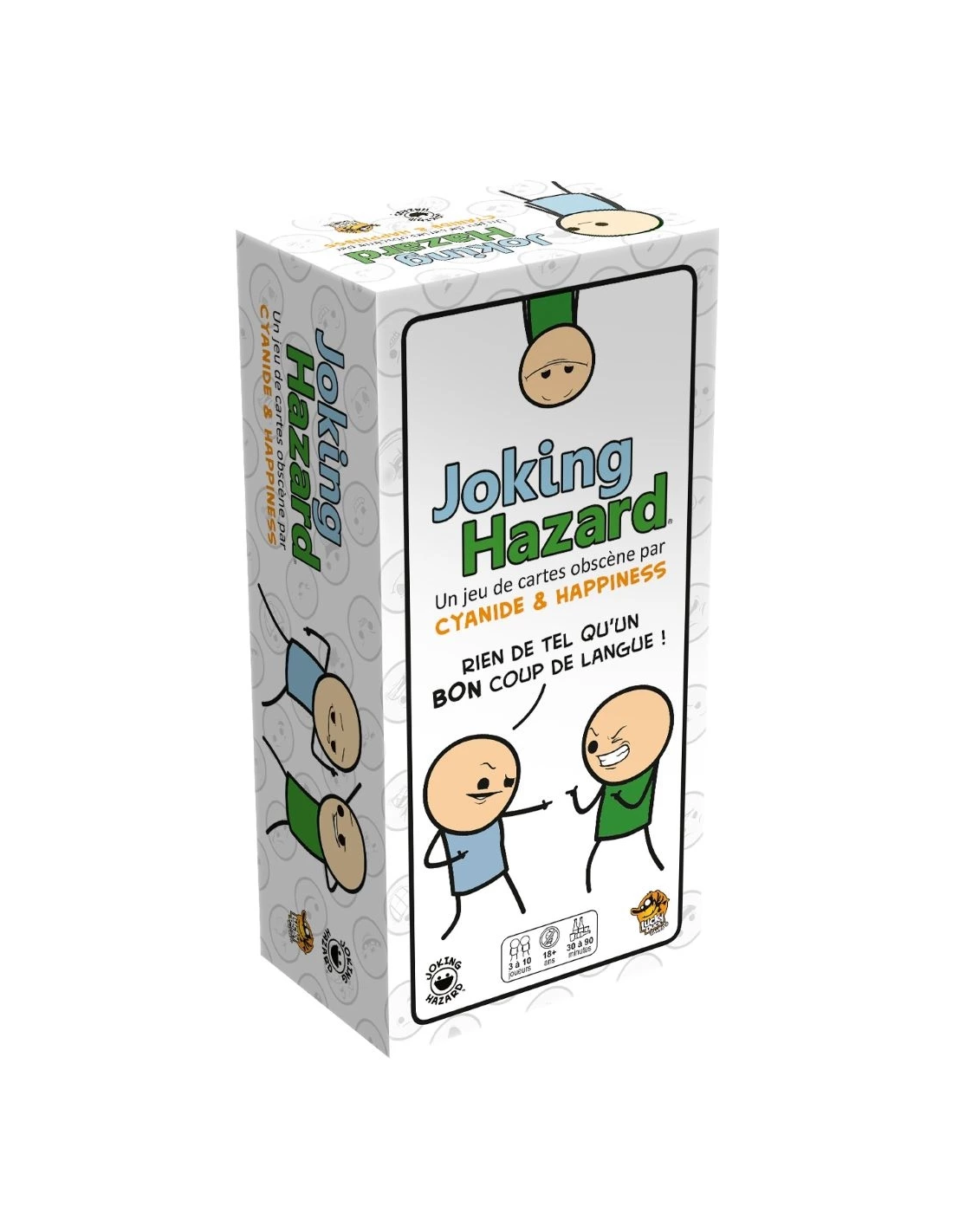 Prêt à franchir les limites du politiquement correct ? Joking Hazard est un jeu d’ambiance totalement déjanté inspiré du webcomic culte Cyanide & Happiness. Le principe est simple : créer la planche de BD en trois cases la plus absurde, choquante ou hilarante. Chaque manche, un joueur joue le rôle de juré et propose une amorce de situation. Les autres participants soumettent une carte secrète pour conclure l’histoire, et le juré choisit la fin qui l’aura le plus fait rire… ou grimacer.