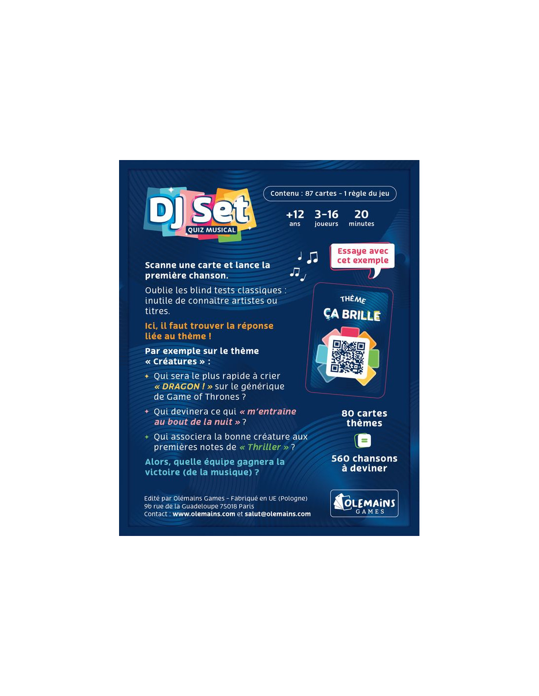 Avec plus de 500 musiques réparties en 80 thèmes, l’ambiance est garantie : rires, discussions et surprises musicales rythmeront vos parties. En équipe, trouvez la bonne réponse pour marquer des points, passez aux commandes en devenant DJ, et faites défiler les morceaux.