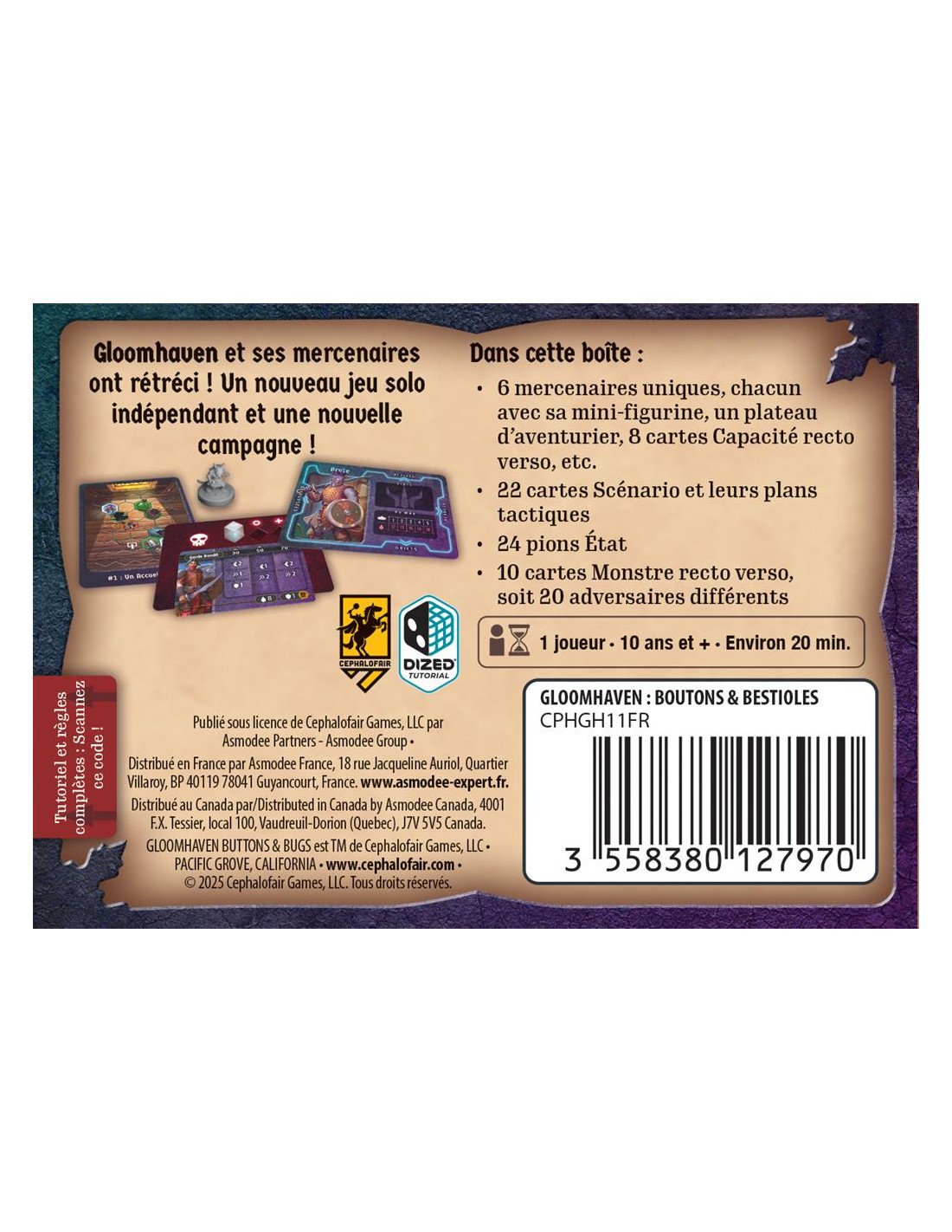 Gloomhaven : Boutons & Bestioles condense l’univers culte de Gloomhaven en une campagne solo intense, accessible et portable. Une aventure miniature pleine de tactique !