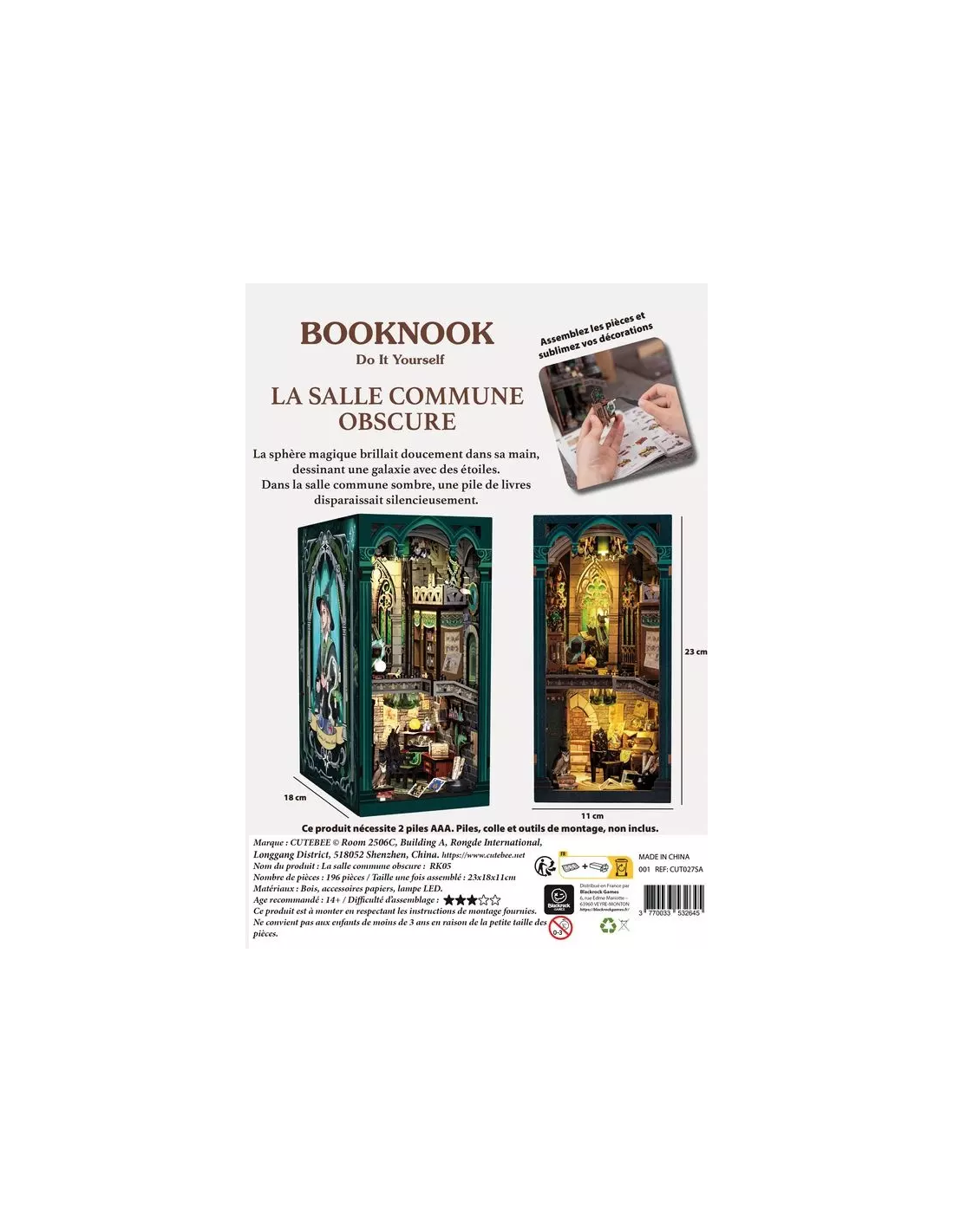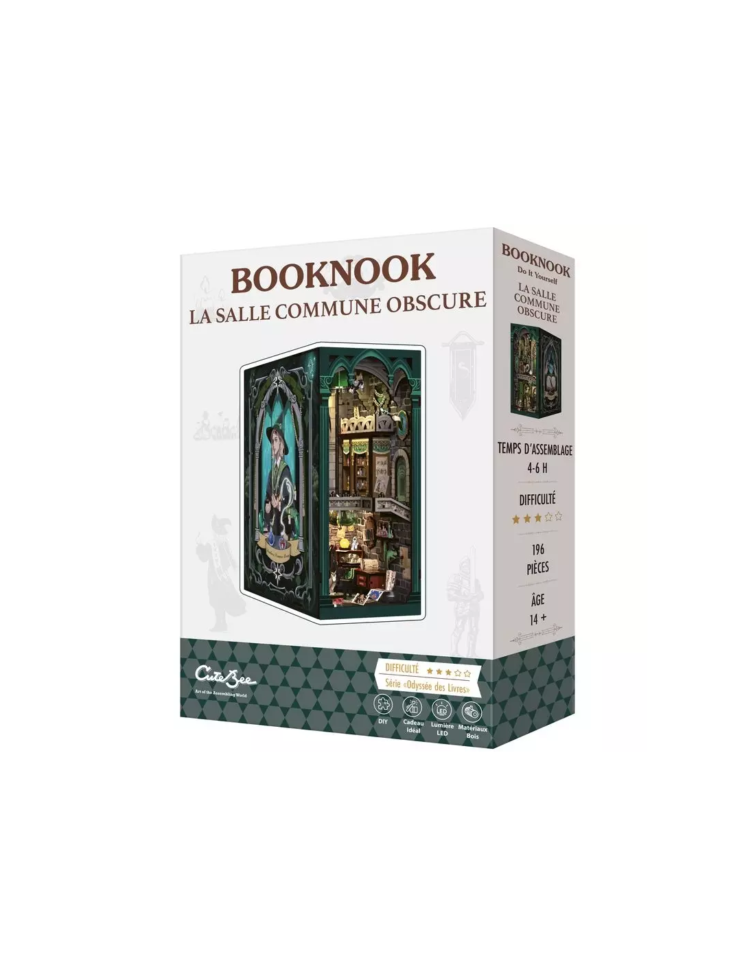 Assemblez la Salle Commune Obscure, un diorama lumineux et détaillé à glisser entre vos livres. Un Book Nook fascinant pour les amoureux de magie et d’univers fantastiques.