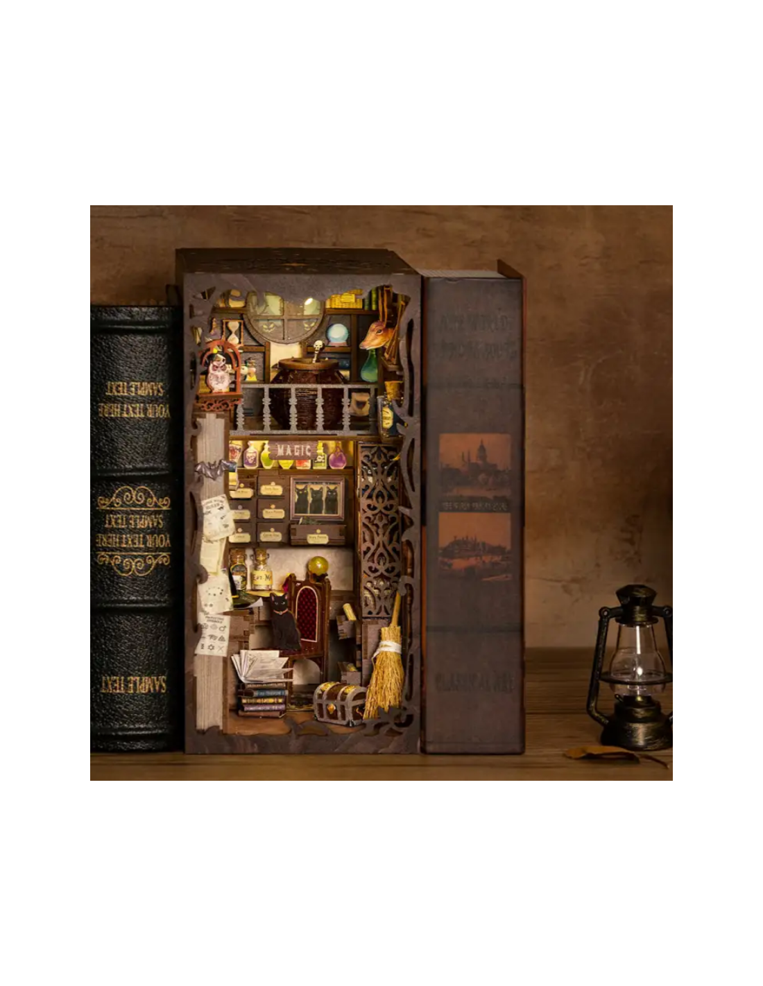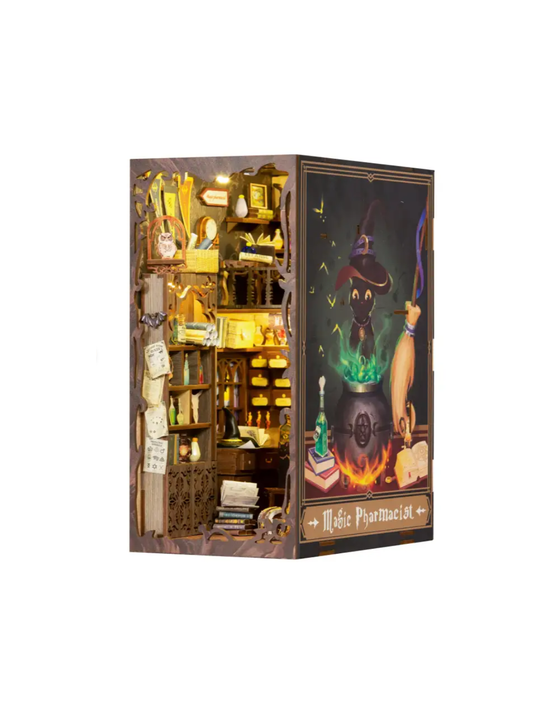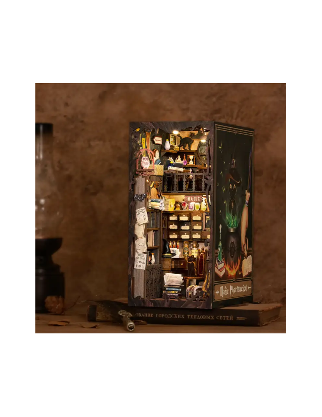Assemblez un décor enchanteur avec le Book Nook – La Pharmacie Magique : un diorama lumineux et poétique qui transforme vos livres en passage secret vers un monde de fantasy.
