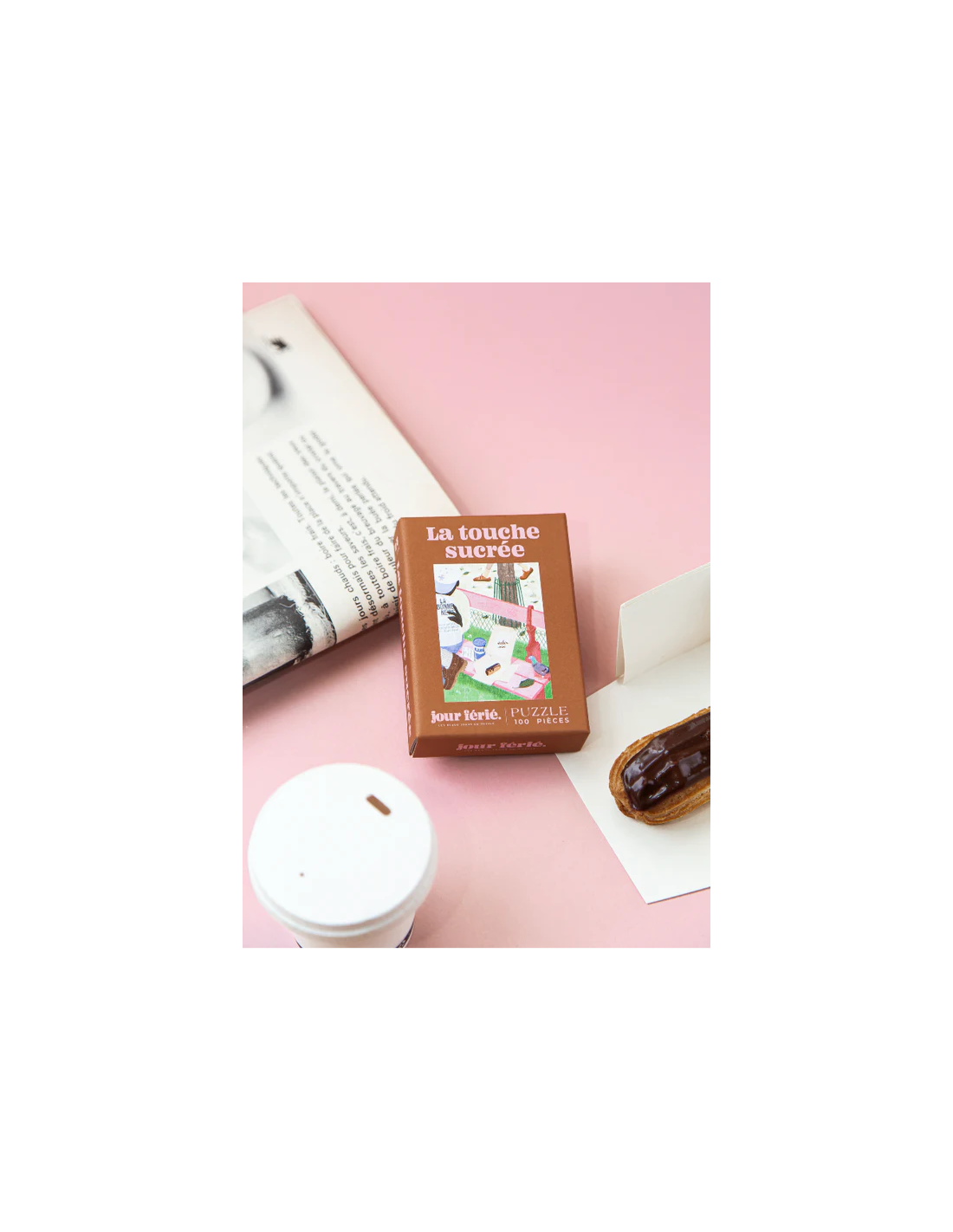 Le puzzle 100 pièces La Touche Sucrée de Puzzle Jour Férié, illustré par Céline Ibanez, capture ces instants gourmands qui font du bien : un éclair au chocolat, une pâtisserie partagée, une bouchée de douceur dans la journée. Conçu sans plastique, imprimé et fabriqué en France, il offre un assemblage rapide, gratifiant et reposant en solo ou à plusieurs, pour discuter, sourire et s’offrir une vraie micro-pause créative. Chaque pièce recompose une scène vintage et colorée, parfaite pour décorer un bureau, initier un enfant au puzzle ou offrir un cadeau chaleureux à un esprit sucré qui aime les défis accessibles. Un format mini, une grande dose de plaisir.