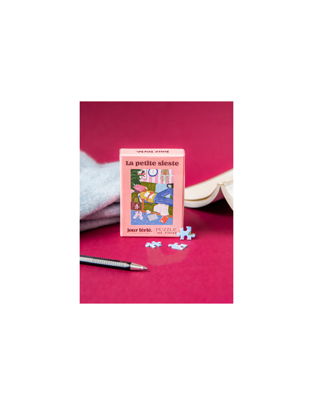 Découvrez le mini puzzle La Petite Sieste de Jour Férié, un véritable appel à la détente et à la sérénité. Avec ses 100 pièces, ce puzzle au format carte postale vous plonge dans l'art de s'endormir sur le canapé, entouré du bazar du quotidien. Fabriqué en France, ce puzzle éco-conçu est parfait pour une micro-sieste ludique et relaxante.