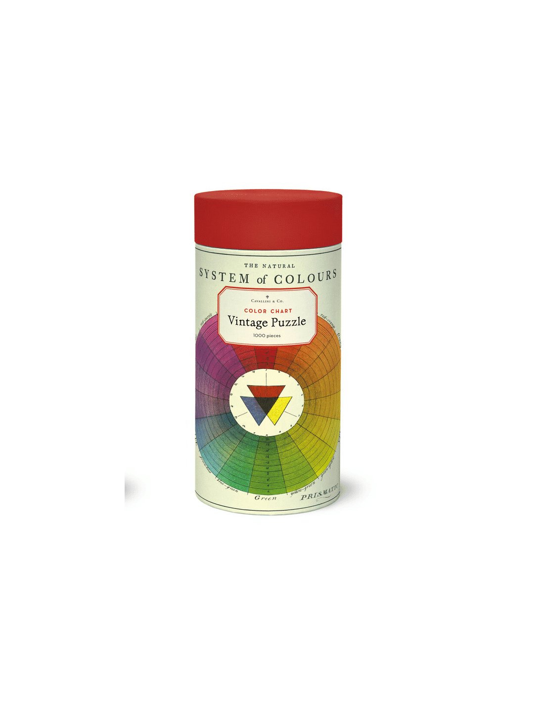 Le Puzzle Color Chart – Cavallini – 1000 pièces rend hommage aux affiches chromatiques anciennes en proposant une superbe composition rétro entièrement centrée sur les nuances et harmonies de couleurs. Avec son design élégant et authentique, ce puzzle met en avant la fameuse roue chromatique illustrée dans un style vintage, parfaite pour les amateurs de beaux visuels et de décoration graphique.