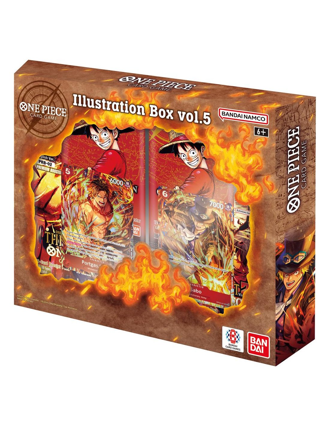 La Illustration Box Vol.5 du One Piece Card Game est un coffret premium pensé pour les joueurs et collectionneurs. Elle réunit des cartes promo à illustrations exclusives, des boosters OP-13 – Carrying on his will axés sur le trio fraternel Luffy / Ace / Sabo, et des boosters PRB-02 dédiés aux réimpressions très recherchées et aux finitions spéciales, dont certaines en pirate foil. Un ensemble idéal pour renforcer ses decks et compléter sa collection avec des visuels inédits.