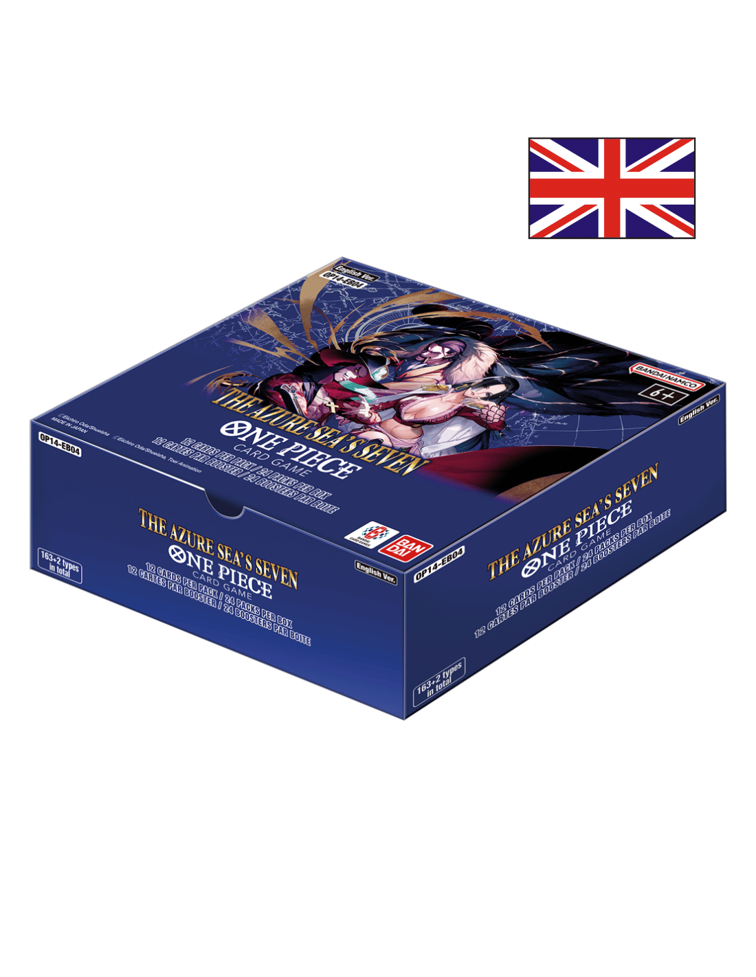 Découvrez la version anglaise de OP14 – The Azure Sea’s Seven, le quatorzième set du One Piece Card Game ! Cette extension met à l’honneur les pirates devenus agents du Gouvernement Mondial, avec des personnages majeurs tels que Crocodile, Dracule Mihawk et Boa Hancock, désormais disponibles en tant que nouveaux Leaders.