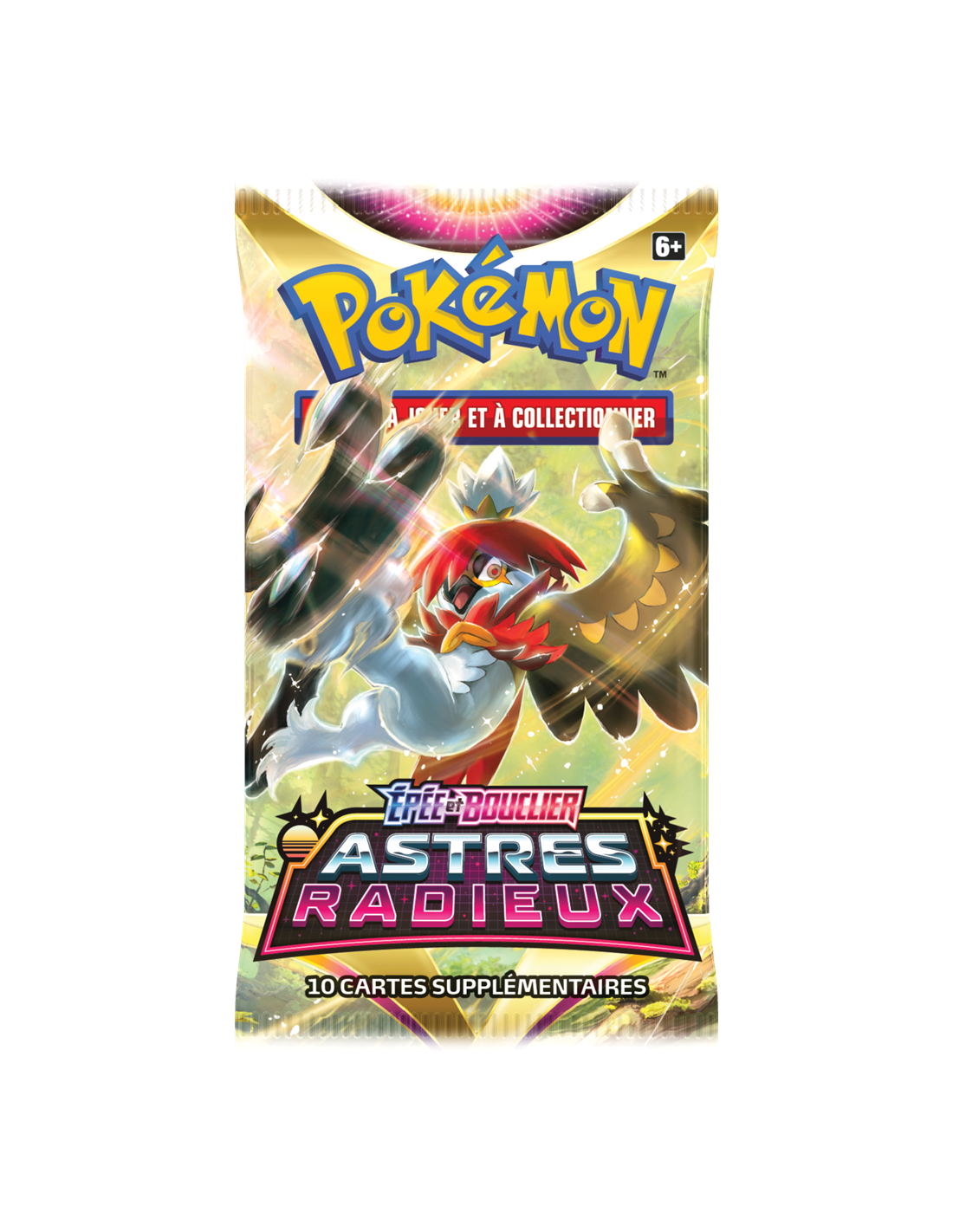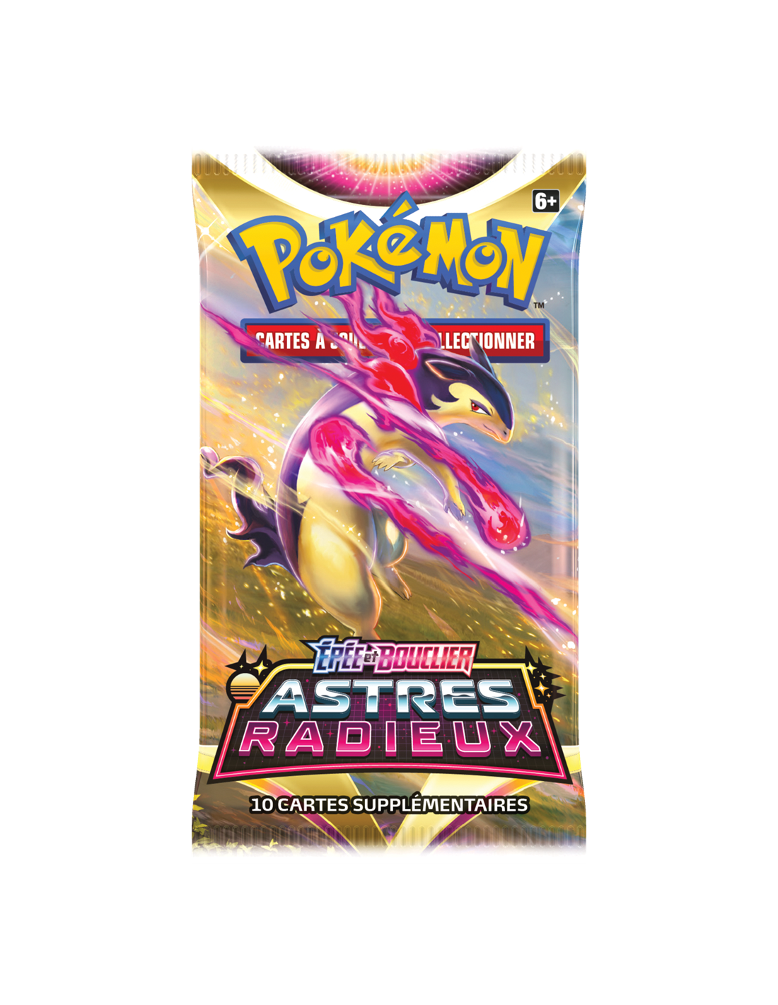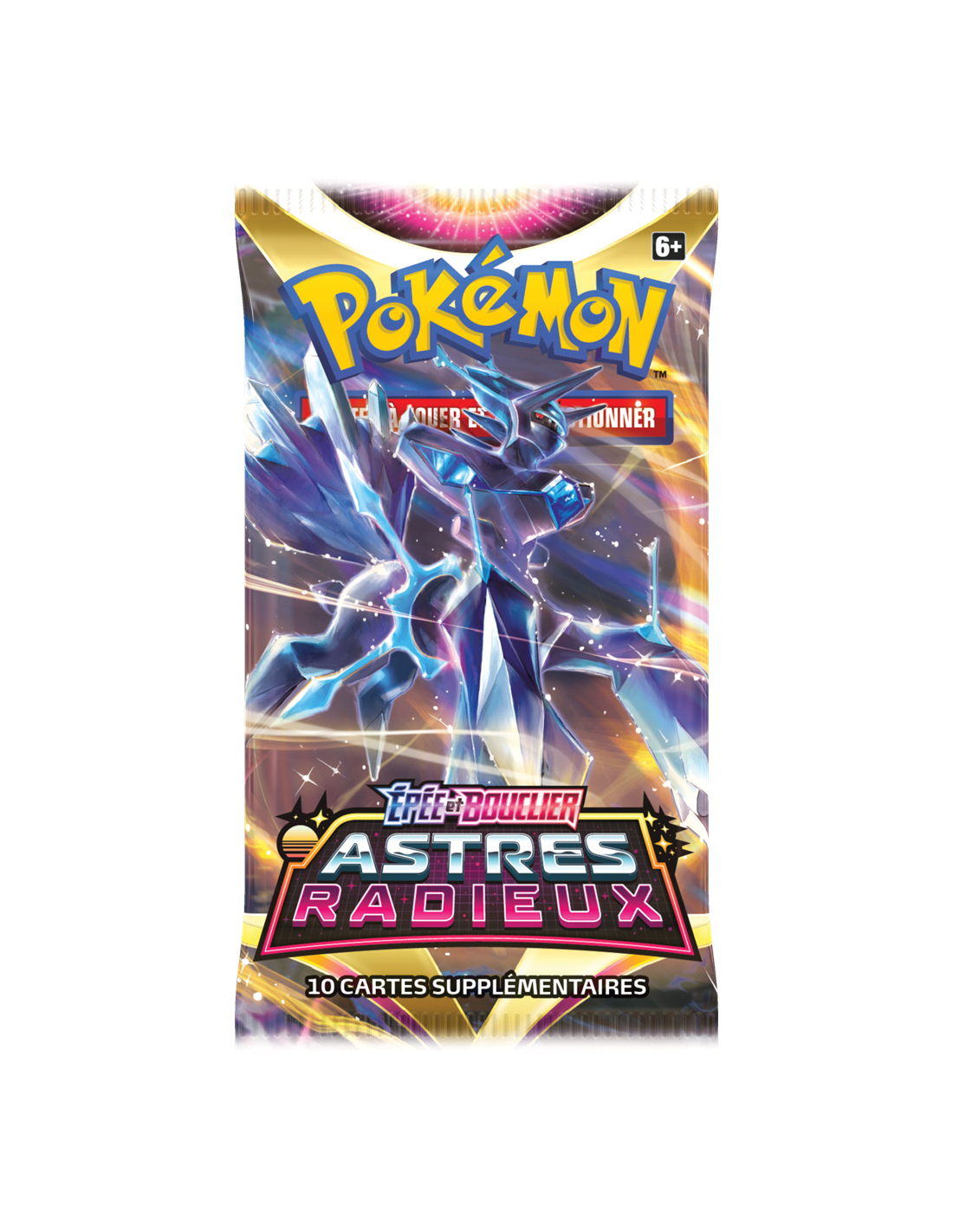 Explorez la mystérieuse région d’Hisui avec l’extension Astres Radieux du JCC Pokémon. Ce booster vous permet de découvrir les Pokémon Radieux, de puissantes cartes brillantes jouables en un seul exemplaire par deck. Retrouverez-vous Greninja Radieux, Heatran Radieux ou une des nombreuses cartes V, VMAX ou VSTAR ?