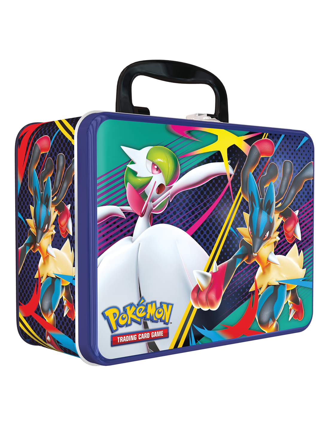 Cette mallette métallique contient tout le nécessaire pour enrichir votre collection : 6 boosters, 3 cartes promo exclusives mettant à l’honneur Tarsal, Kirlia et Riolu, ainsi qu’un ensemble d’accessoires Pokémon officiels.