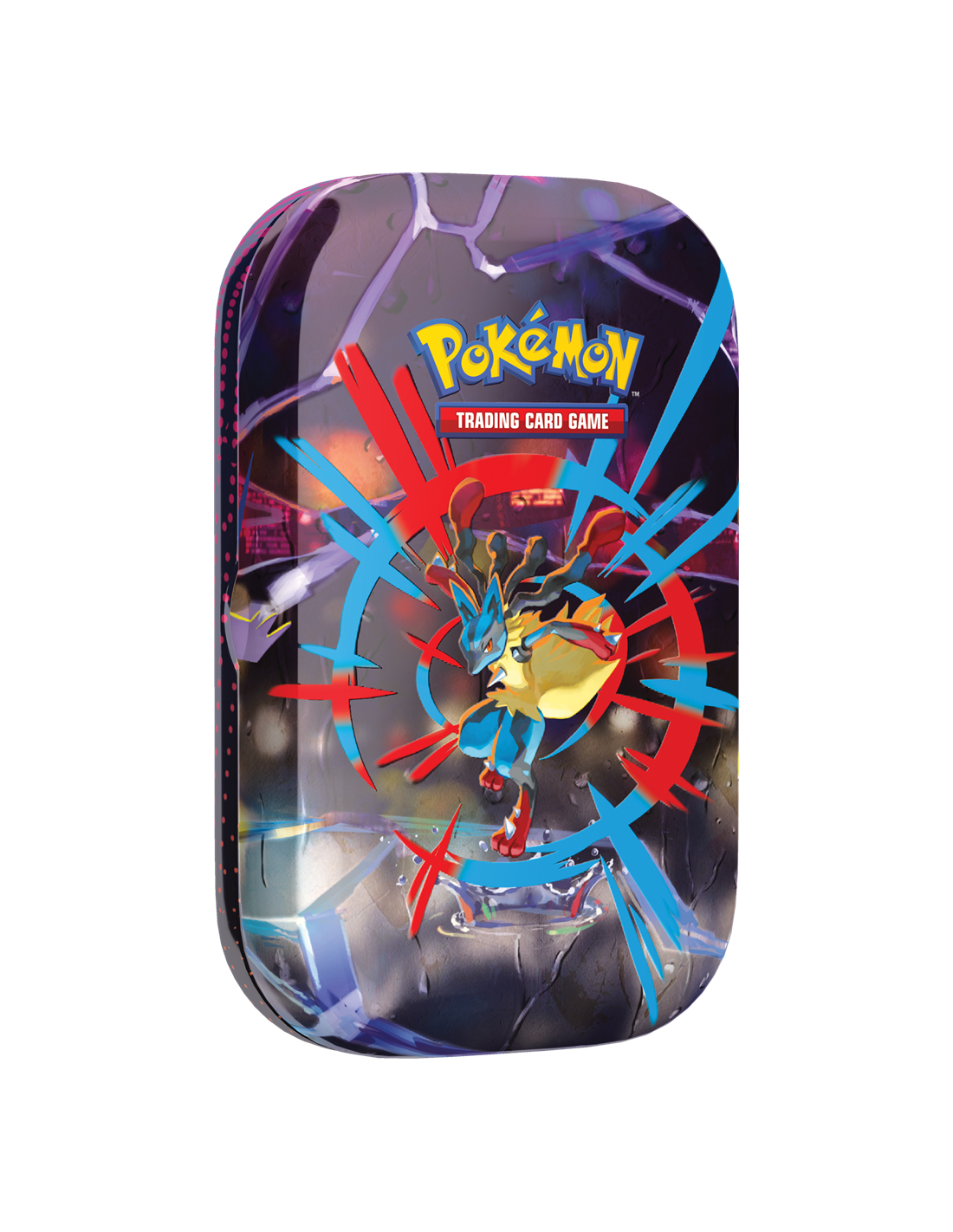 La Mini Tin Pokémon Q3 propose 2 boosters, 1 carte artistique exclusive et une page d’autocollants, le tout dans une mini-boîte métallique à collectionner.