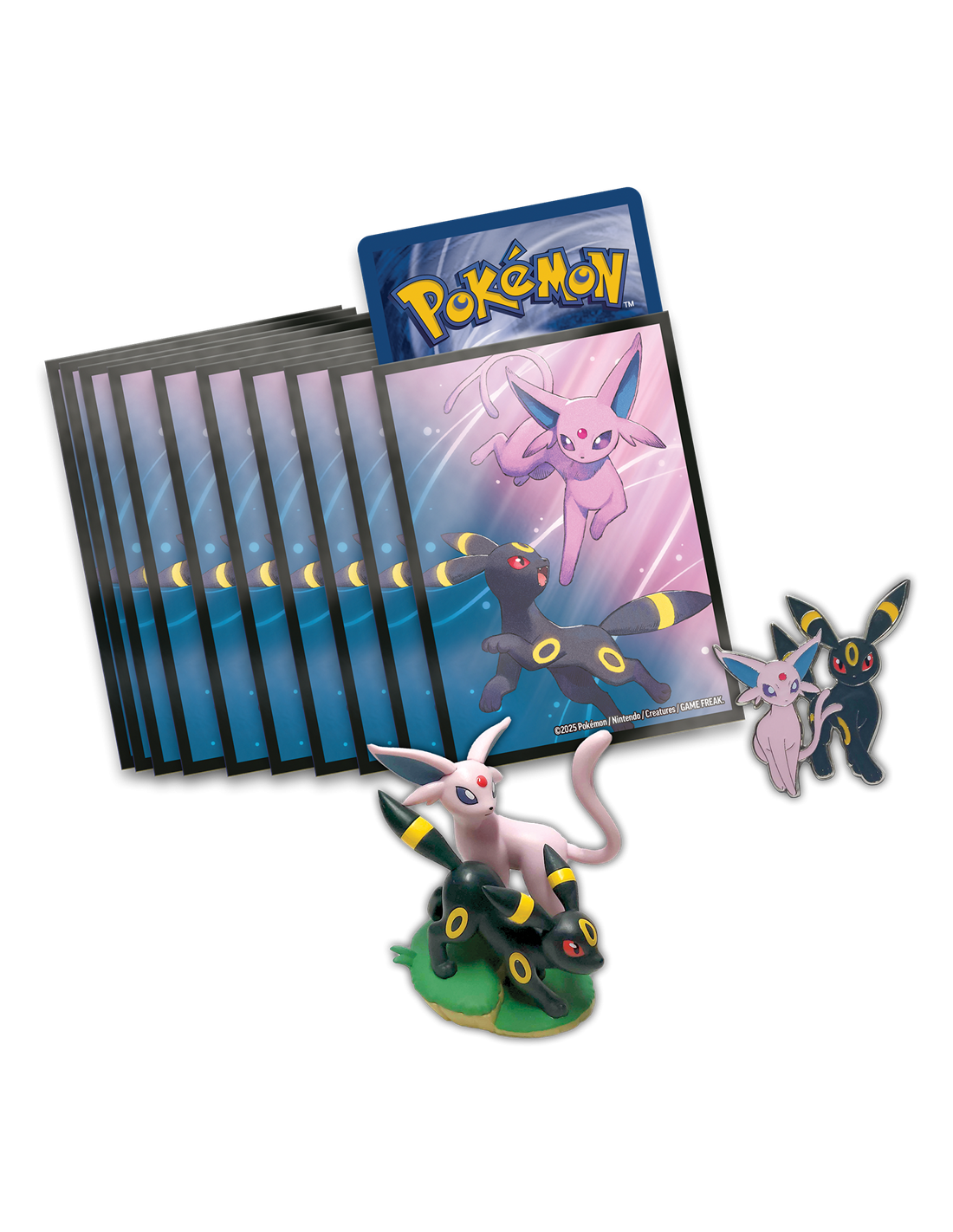 Célébrez la lumière et l’ombre avec Mentali et Noctali-ex ! Un coffret premium étincelant pour enrichir votre collection Écarlate et Violet : Évolutions Prismatiques.