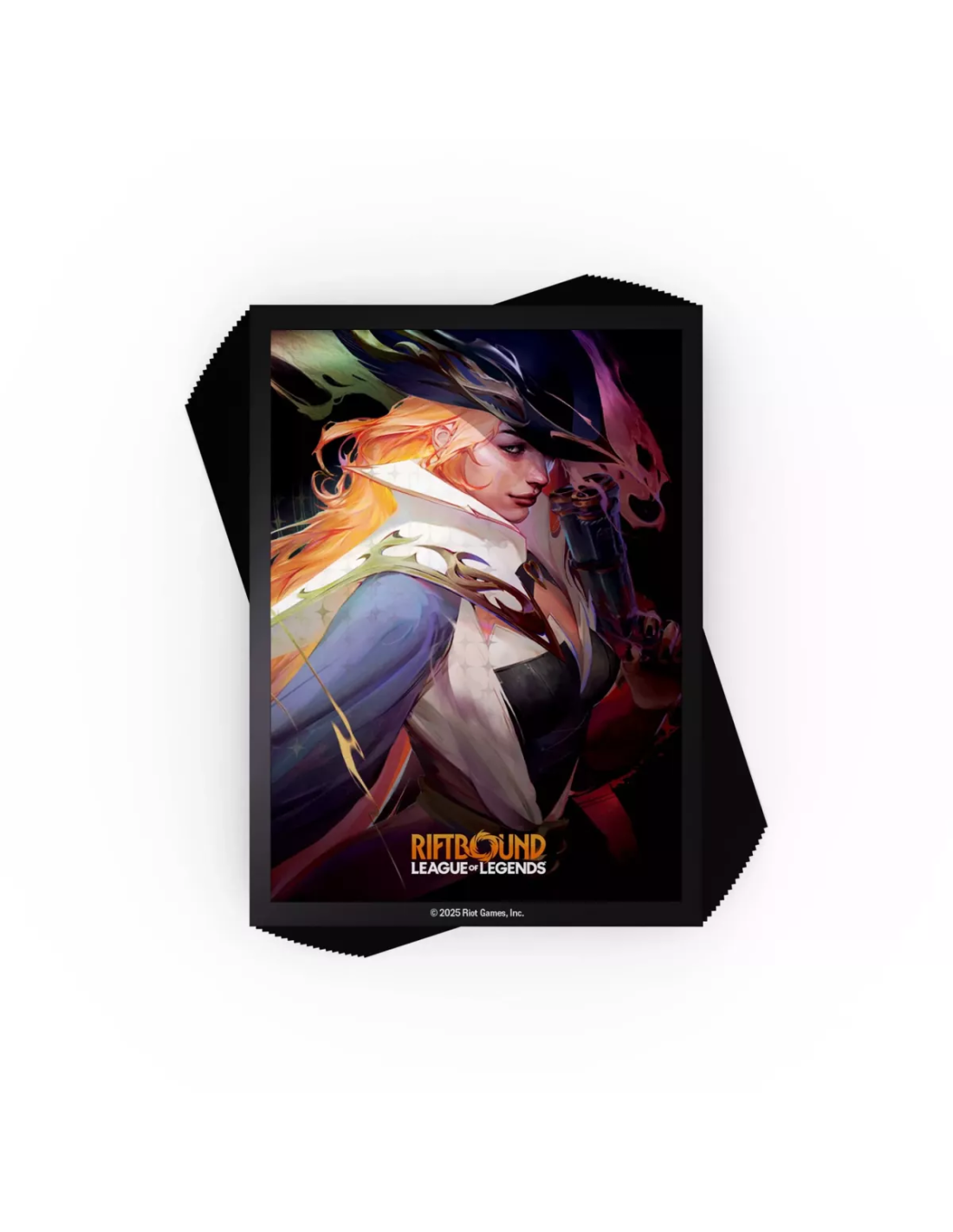 Protège-cartes officiels : compatibles avec Riftbound, à l’effigie de Miss Fortune — un visuel attractif pour les fans.