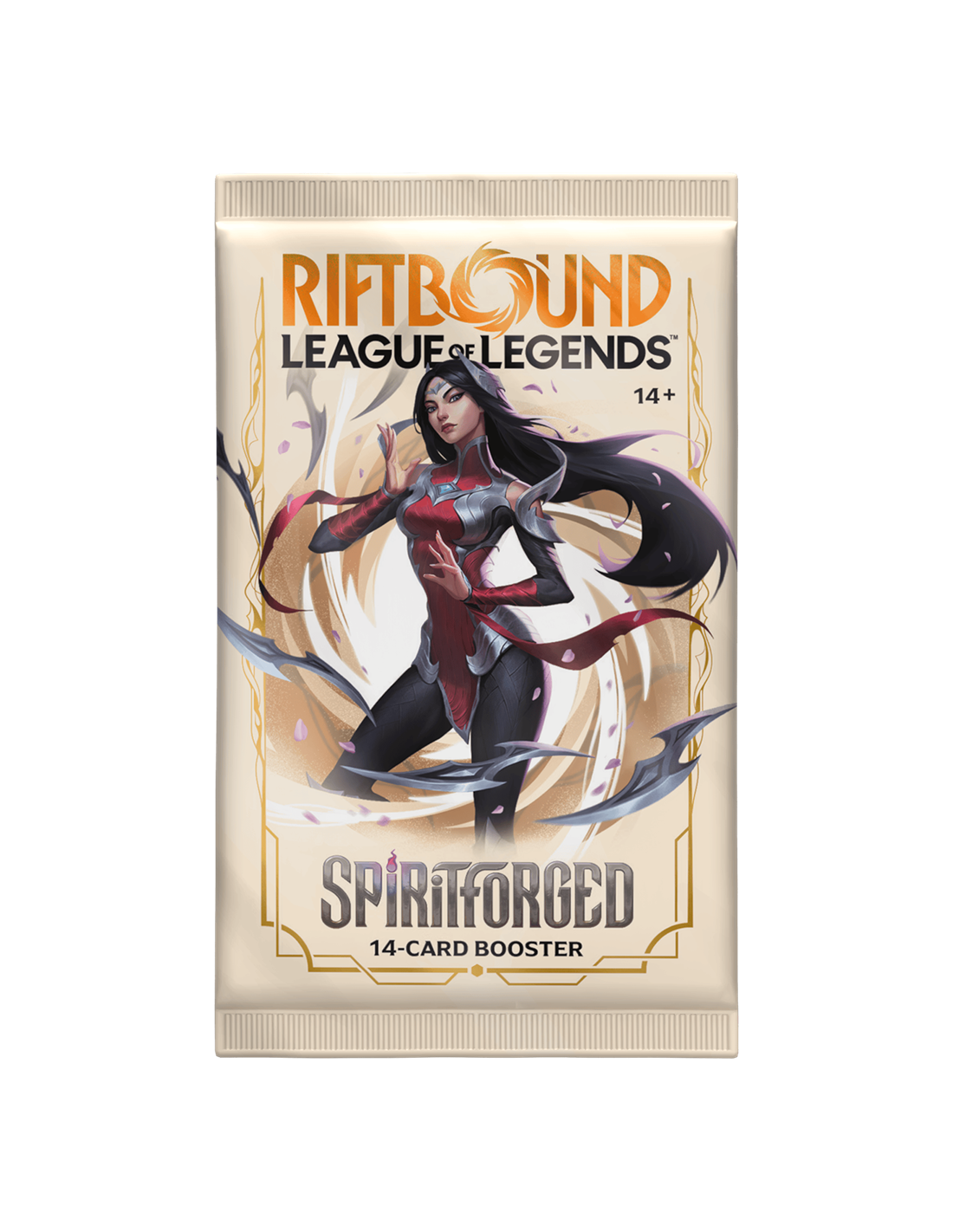 Chaque booster de 14 cartes est issu d’un ensemble de plus de 220 cartes différentes, incluant plus de 60 cartes à illustrations alternatives. Spiritforged met l’accent sur la variété stratégique, la montée en puissance des decks et le plaisir d’ouverture, avec une forte présence de cartes rares, épiques et foil.